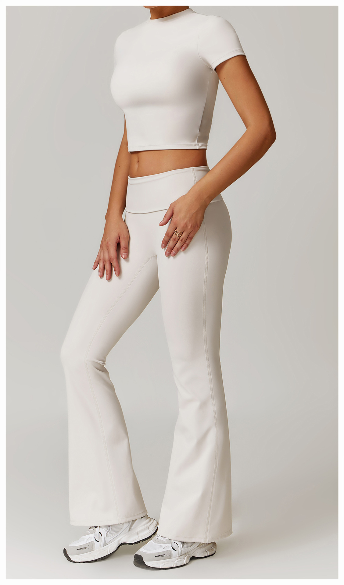 유럽과 미국의 하이웨이스트 힙업 요가팬츠, 캐주얼 타이트한 와이드 레그 플레어 팬츠, 스포츠 피트니스 아우터 팬츠, 아우터 속건성