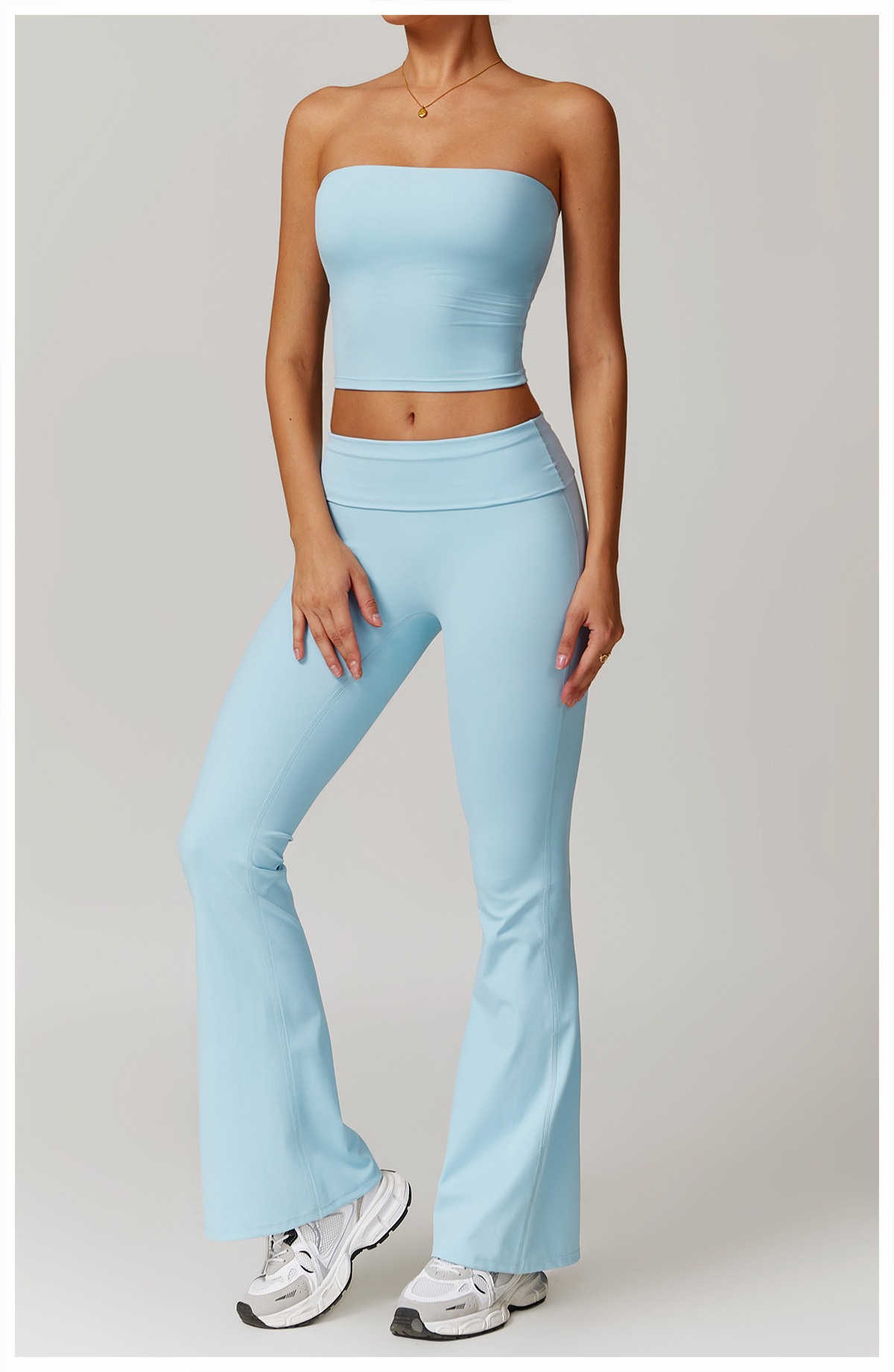 • 하늘색 튜브탑 + 바지