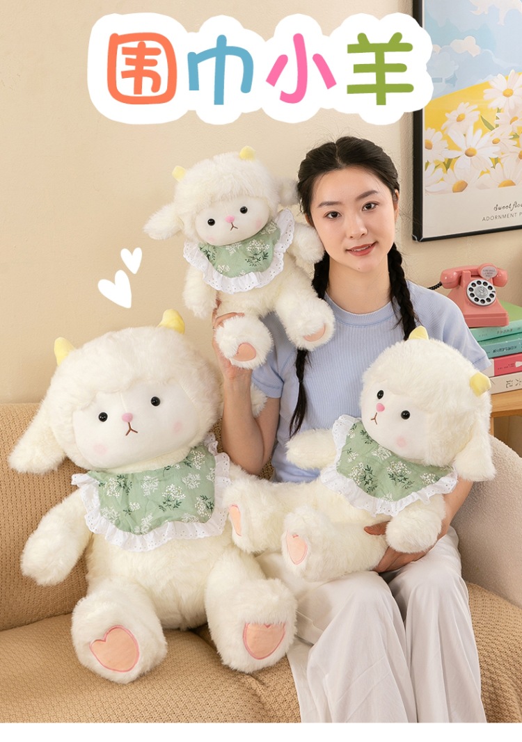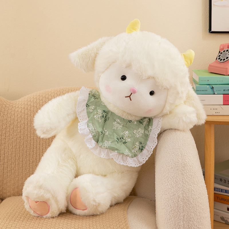 국경 간 인기 아기 부드러운 귀여운 턱받이 양 인형 귀여운 작은 양 플러시 장난감 어린이 생일 도매