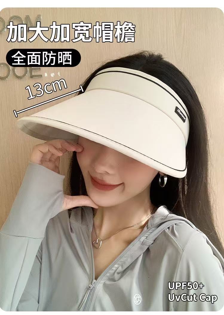 새로운 여름 자외선 차양 모자 큰 테두리 빈 모자 여성 uv 자전거 안티 자외선 태양 모자 배치