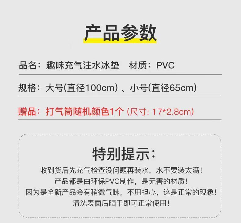 • [언더워터 월드 트럼펫] 65cm 재미있는 풍선 물로 채워진 아이스 매트 + 아이스 매트 펌프 [색상 랜덤]