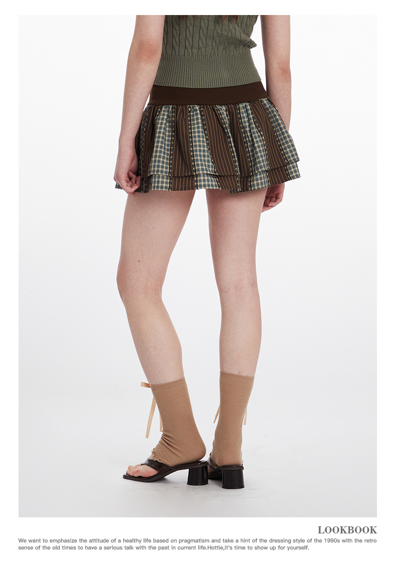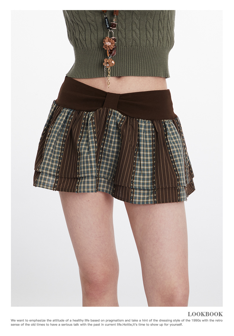 HeyHenry American Style Hot Girl 섹시한 낮은 허리 레트로 격자 무늬 스커트 여성 짧은 스커트 안티 눈부심스토어 가기