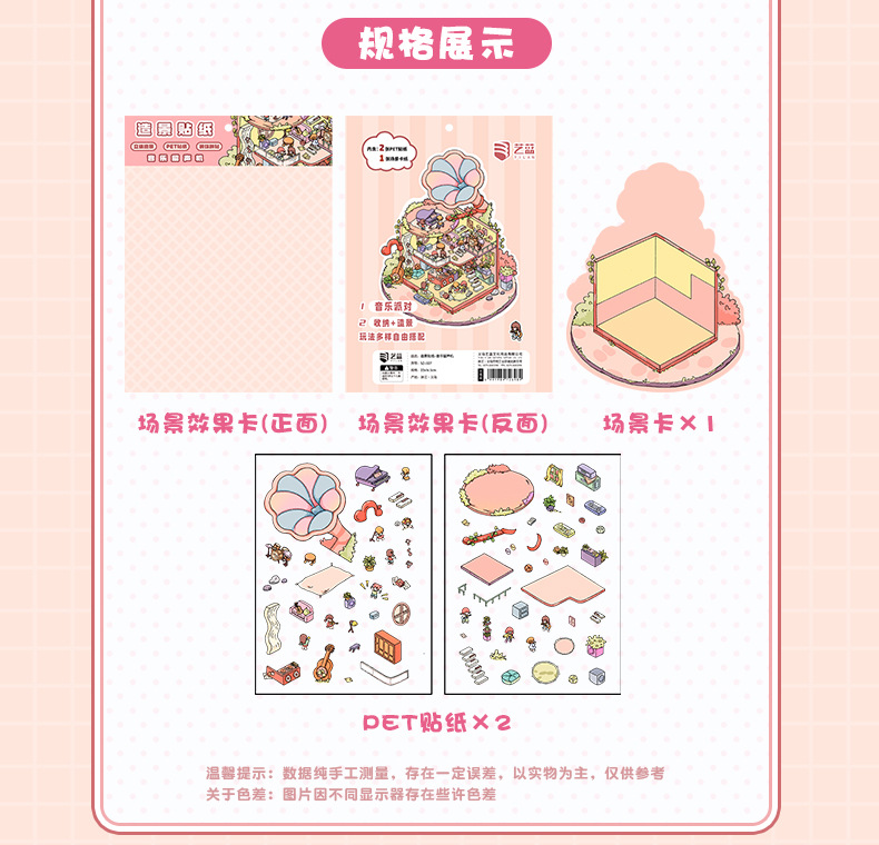 귀여운 미니어처 장면 조경 스티커 만화 3D 입체 오두막 작은 빨간 책 감압 조경 콜라주 손 계정 스티커