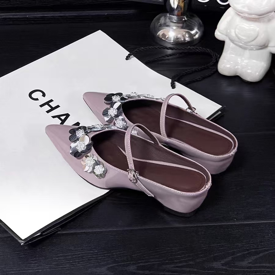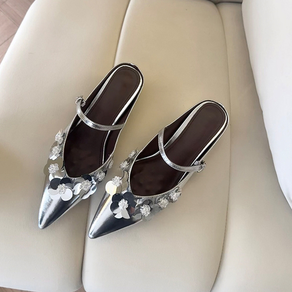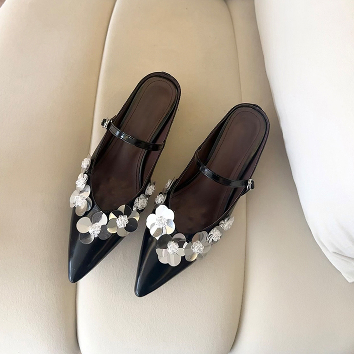 양가죽 버전 ~ 프랑스 스타일 꽃 내부 높이 높이는 Baotou 하프 슬리퍼 여성 외부 착용 슬립 온 얕은 입 뾰족한 메리 제인 신발스토어 가기