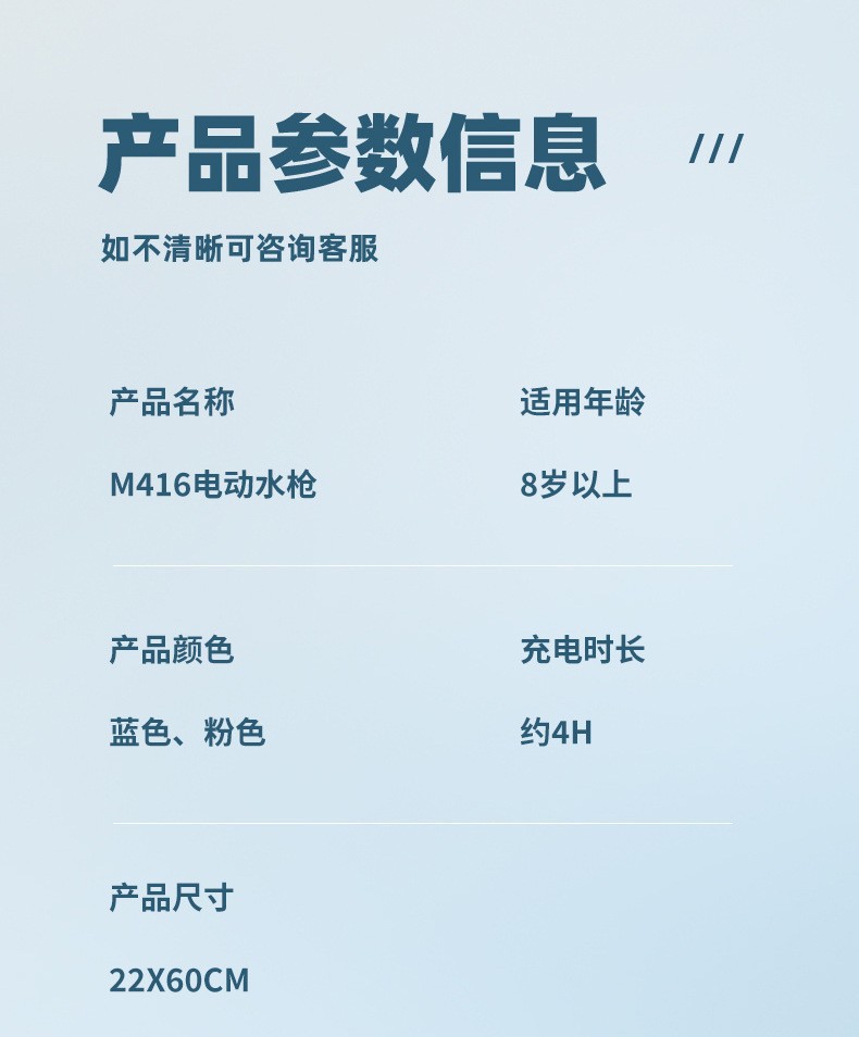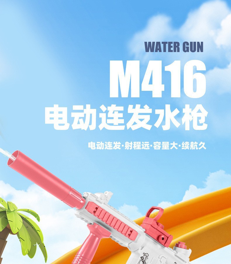 크로스보더 아마존 M416 전동 물총 대용량 연속 발사 조명 기능 어린이 물놀이 전투 장난감 물총