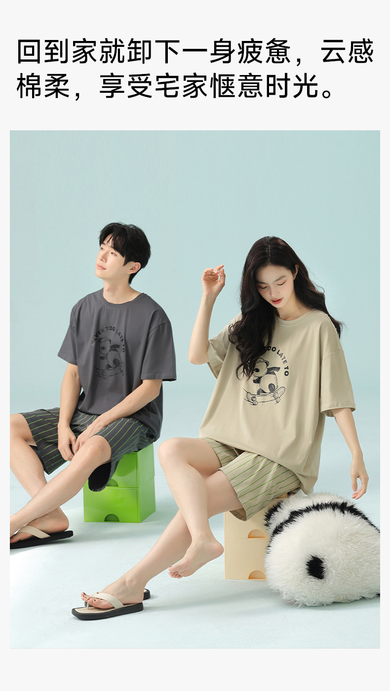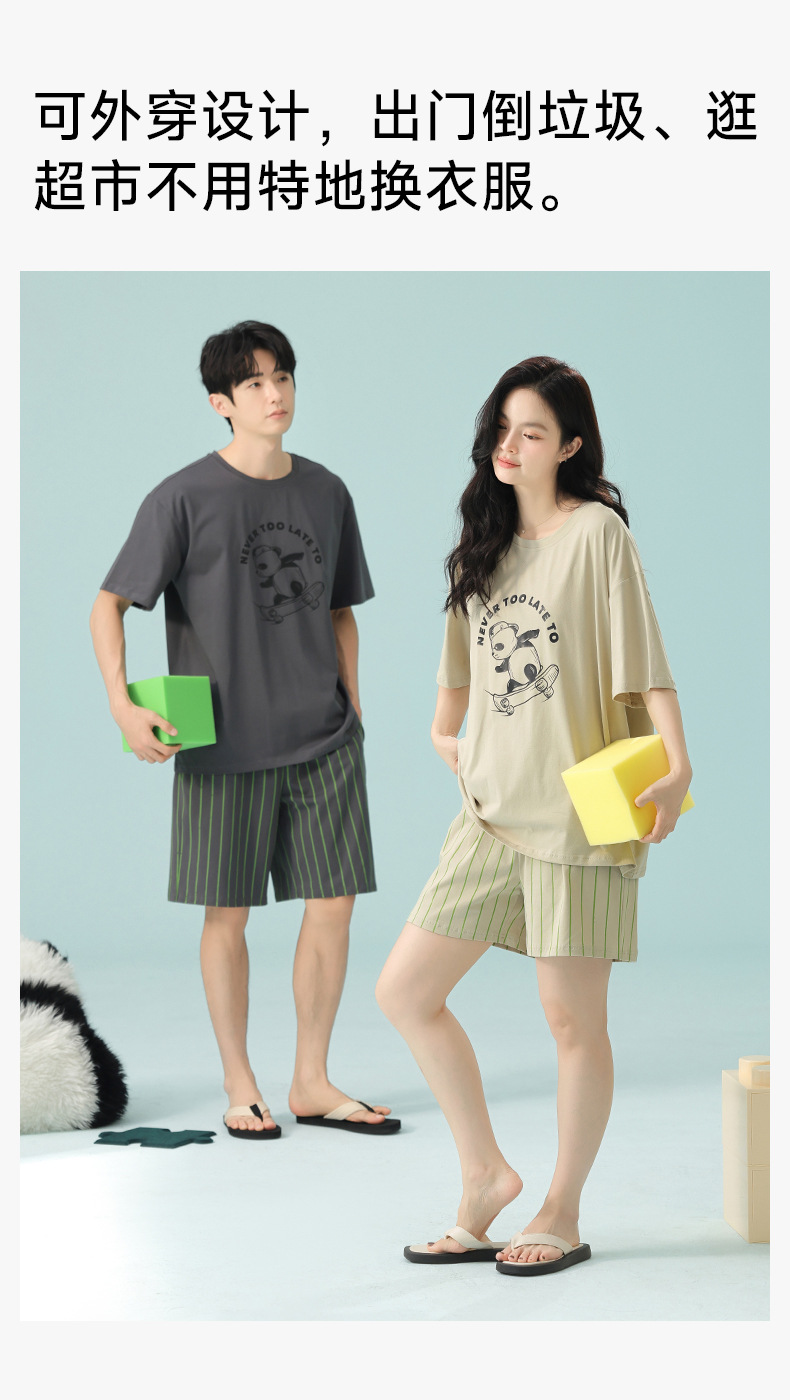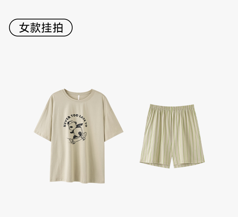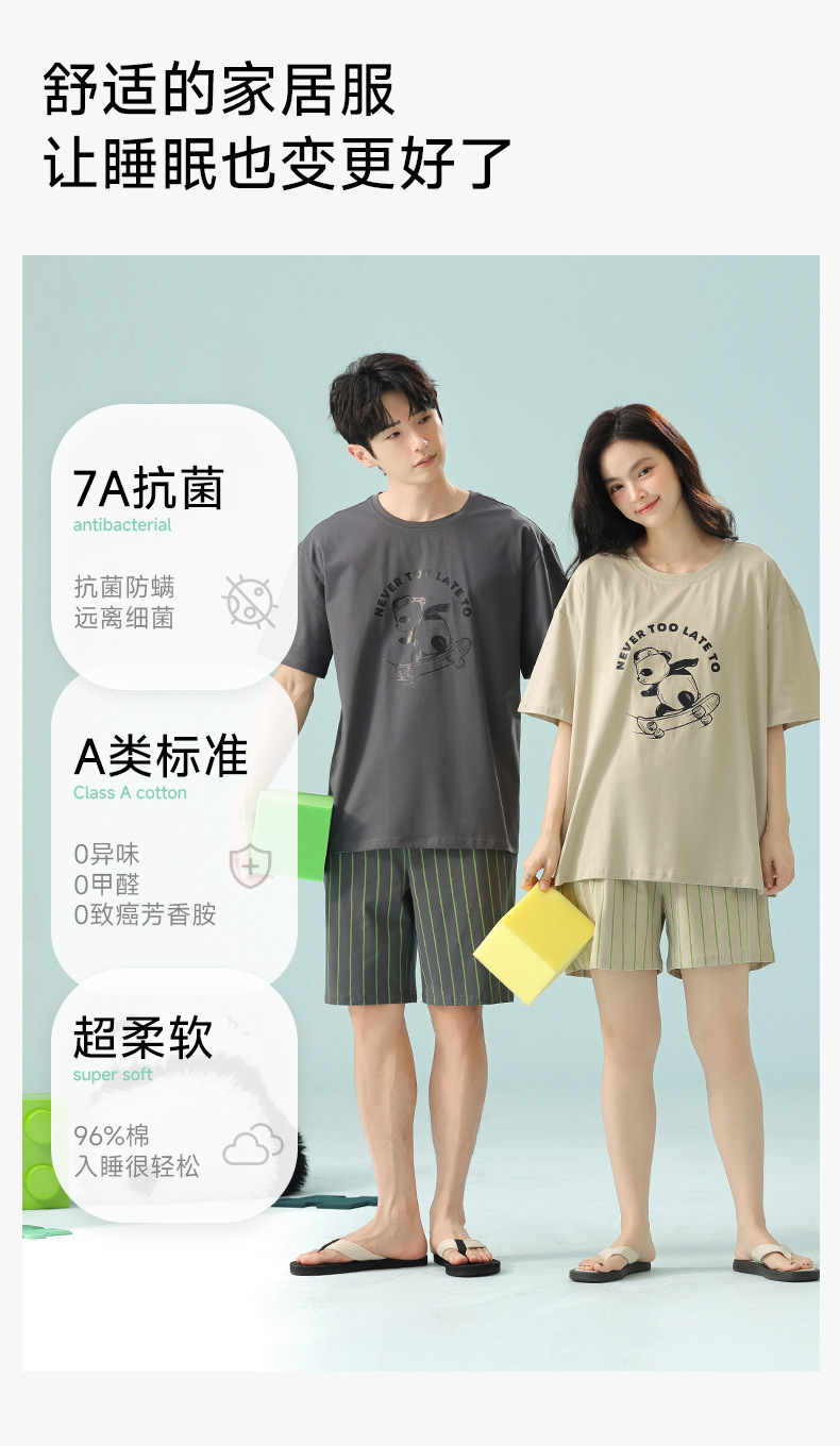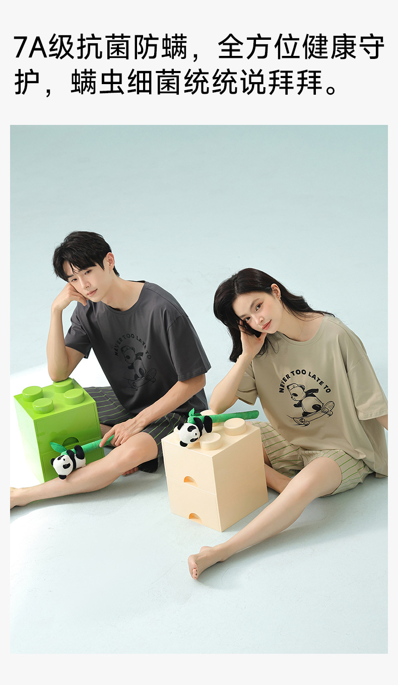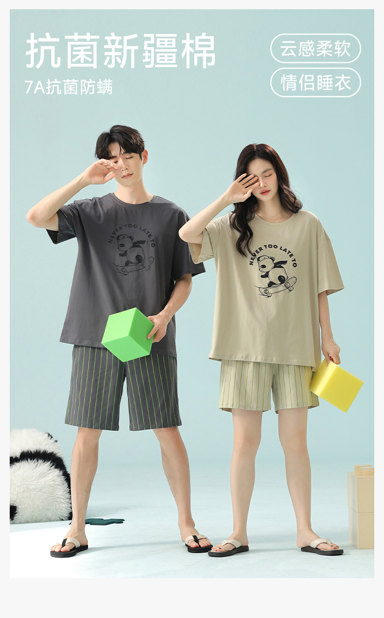 [항균성 신장면] 봄 · 여름 면화 애호가 여성 잠옷 반소매 한국 만화 남성 가정옷 세트스토어 가기