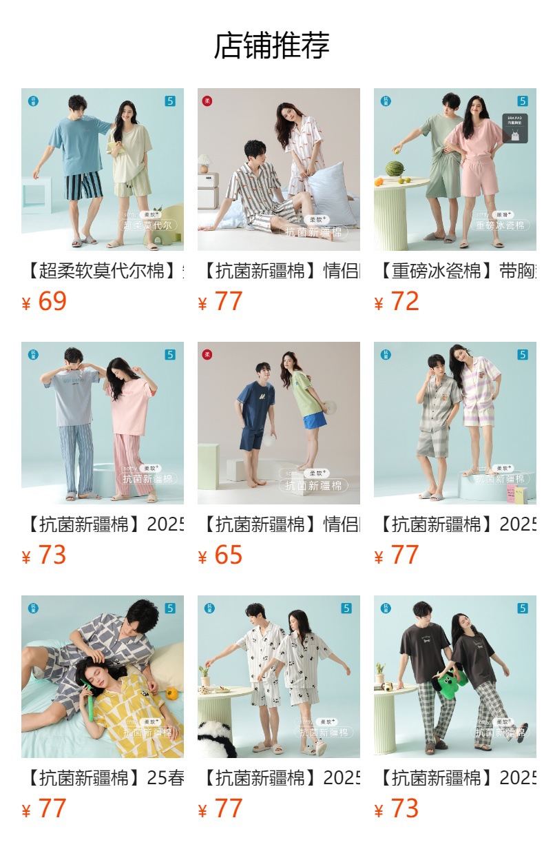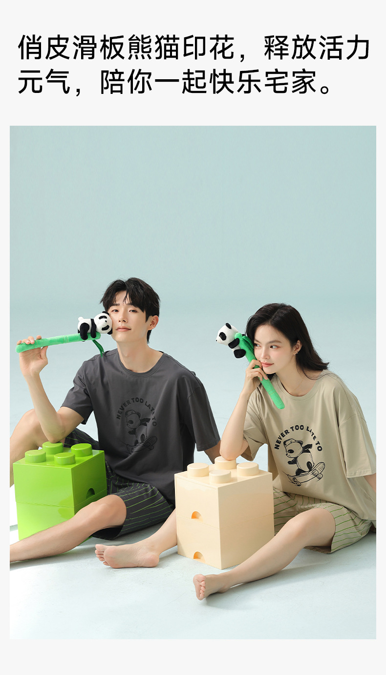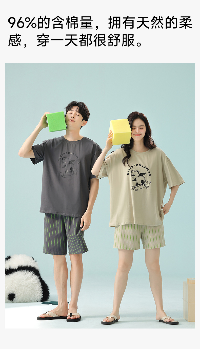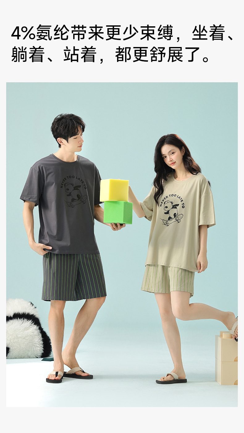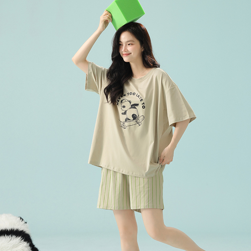 [항균성 신장면] 봄 · 여름 면화 애호가 여성 잠옷 반소매 한국 만화 남성 가정옷 세트스토어 가기