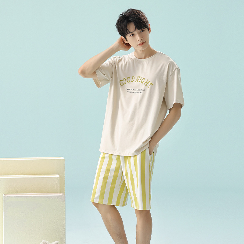 [항균성 신장면] 봄 · 여름 면화 애호가 여성 잠옷 반소매 한국 만화 남성 가정옷 세트