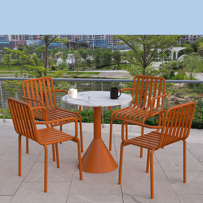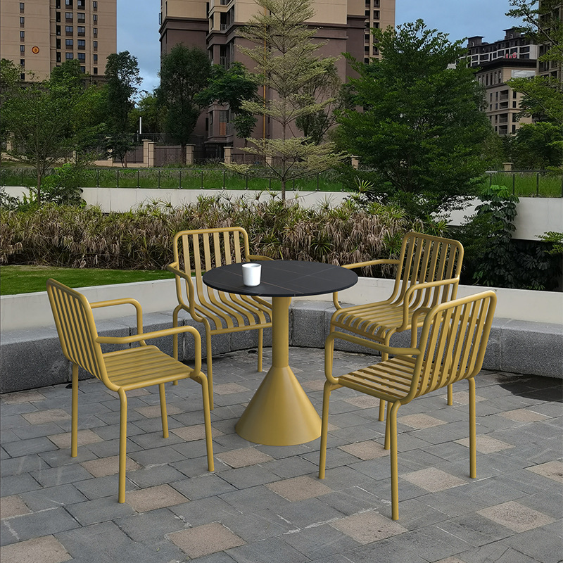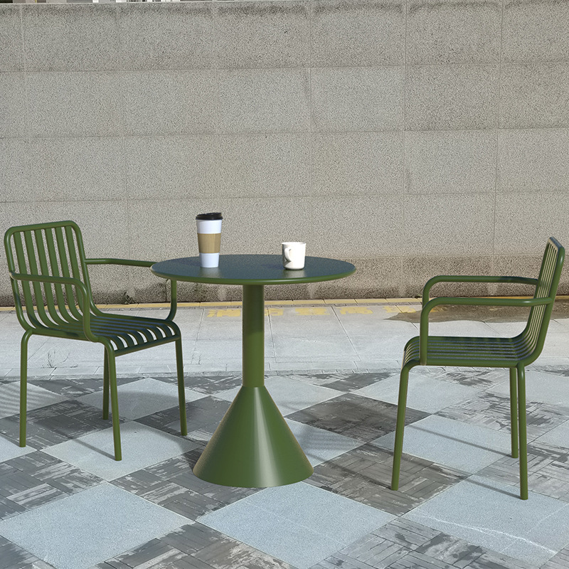야외 금속 식탁 및 의자 야외 안뜰 발코니 협상 작은 라운드 테이블 카페 우유 차 가게 레저 테이블 및 의자 세트