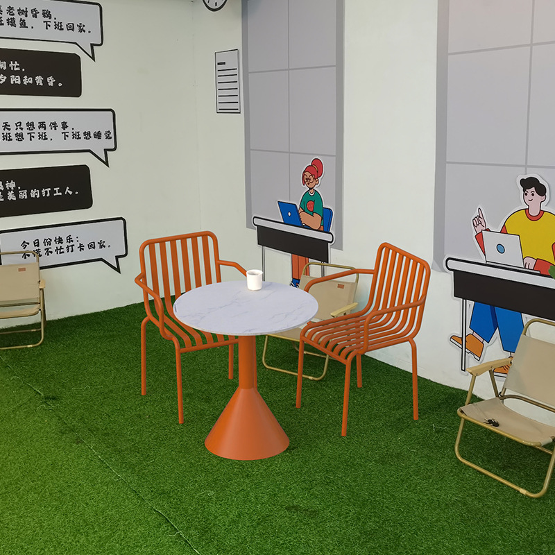 야외 금속 식탁 및 의자 야외 안뜰 발코니 협상 작은 라운드 테이블 카페 우유 차 가게 레저 테이블 및 의자 세트스토어 가기