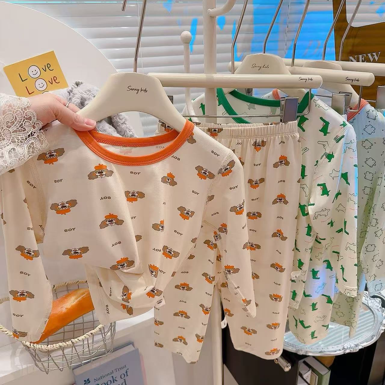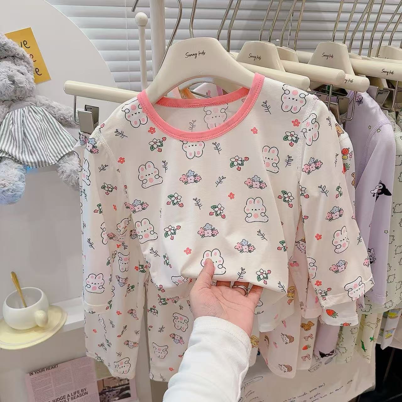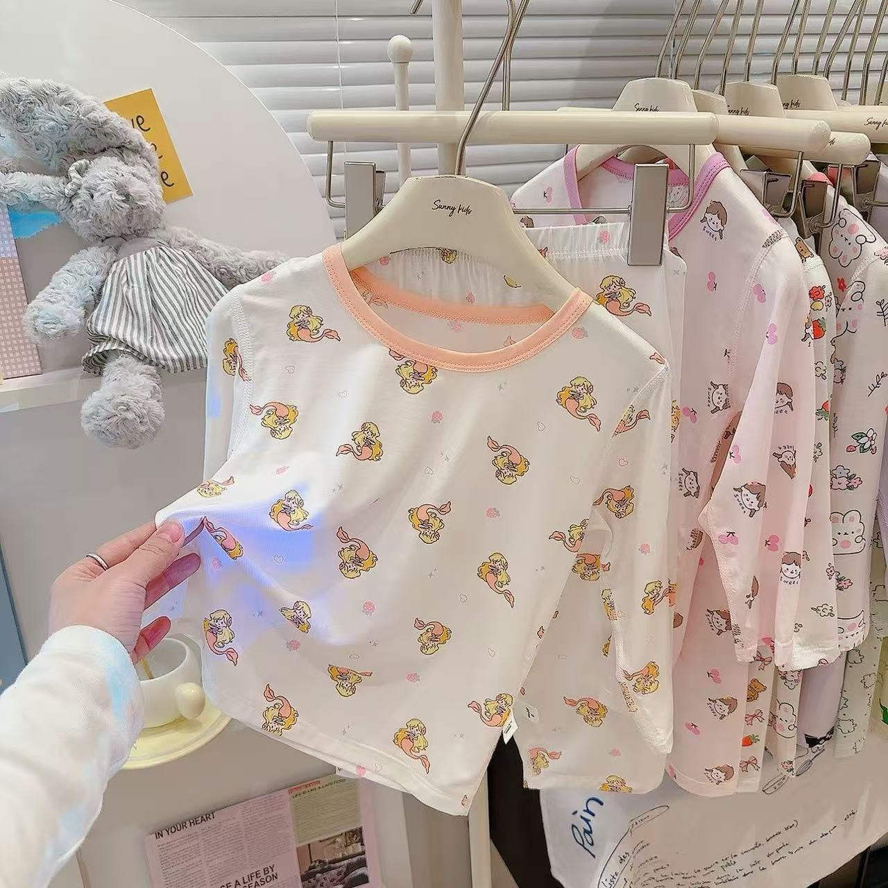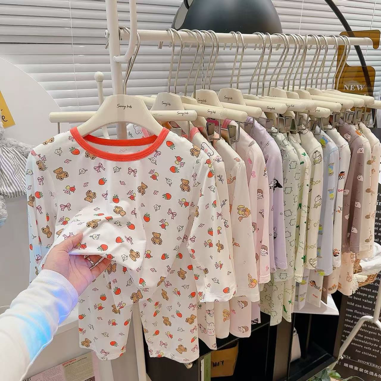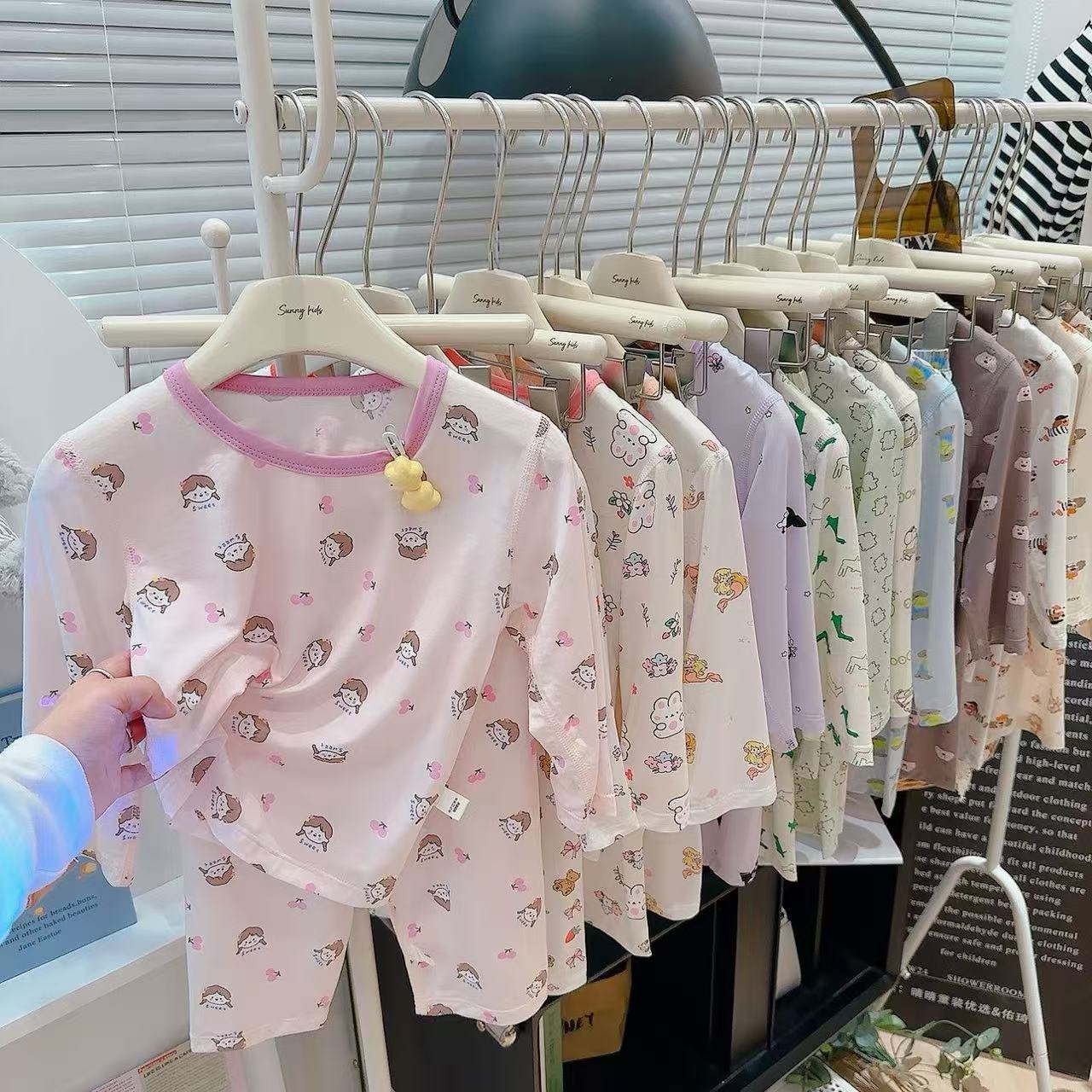 7A 항균 아동용 잠옷 무봉제 홈웨어 세트 남아용 반팔 여아용 통기성 얇은 에어컨 의류스토어 가기