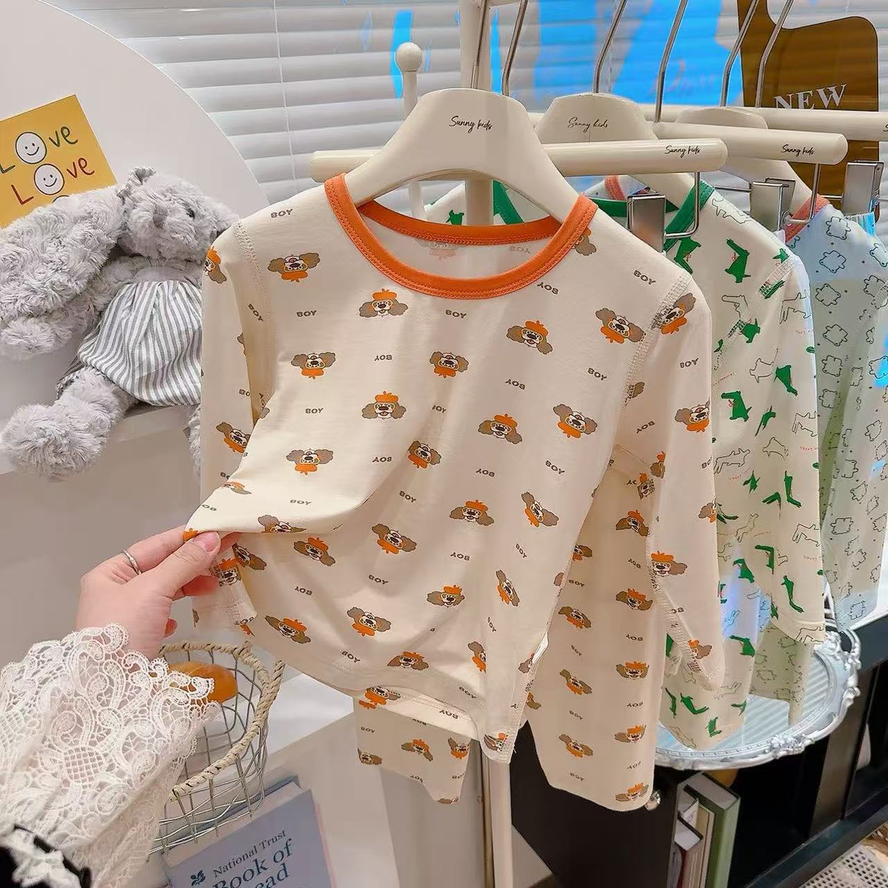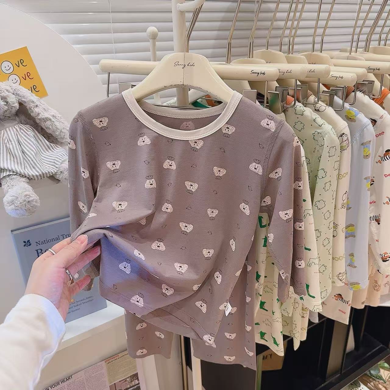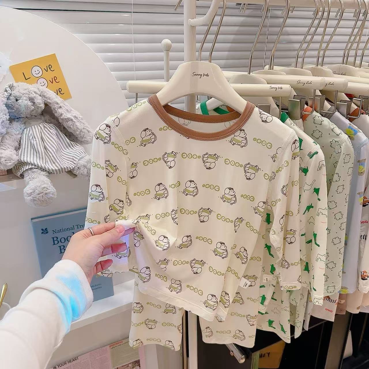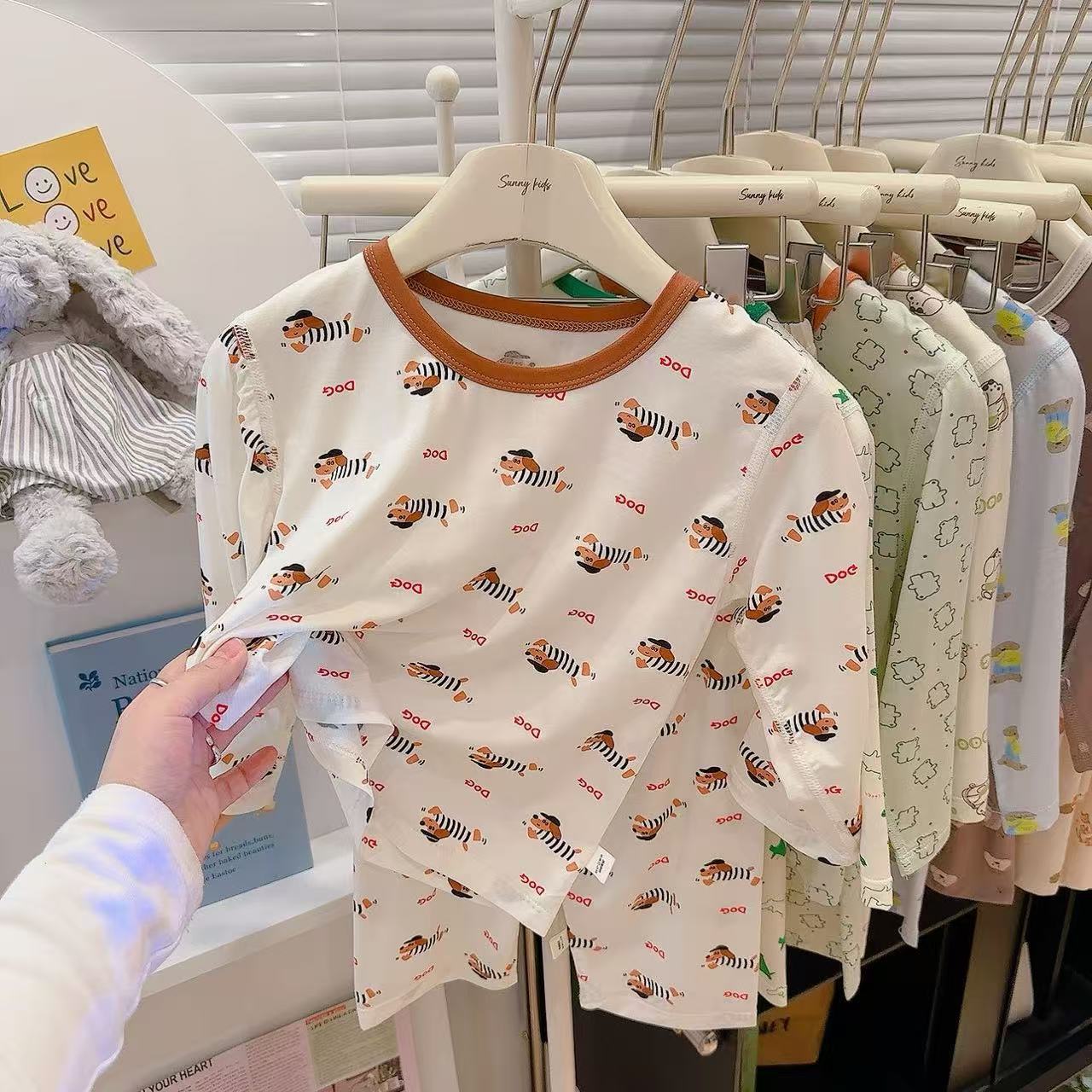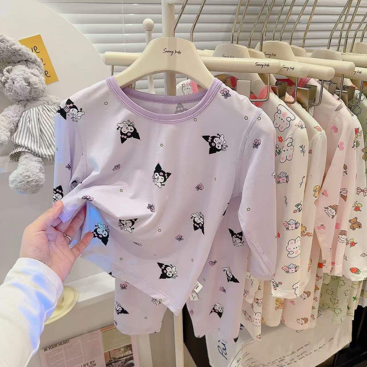 7A 항균 아동용 잠옷 무봉제 홈웨어 세트 남아용 반팔 여아용 통기성 얇은 에어컨 의류스토어 가기