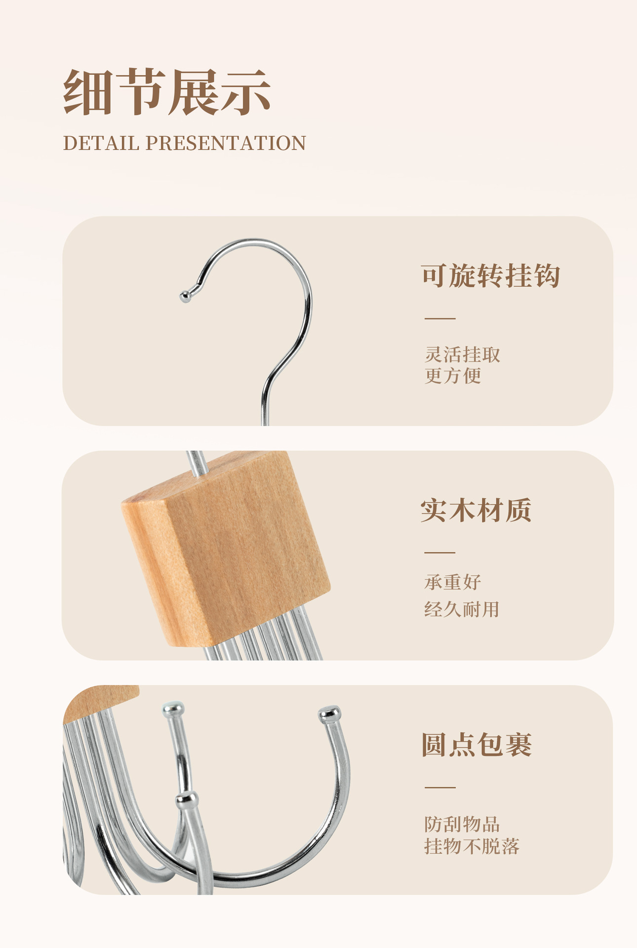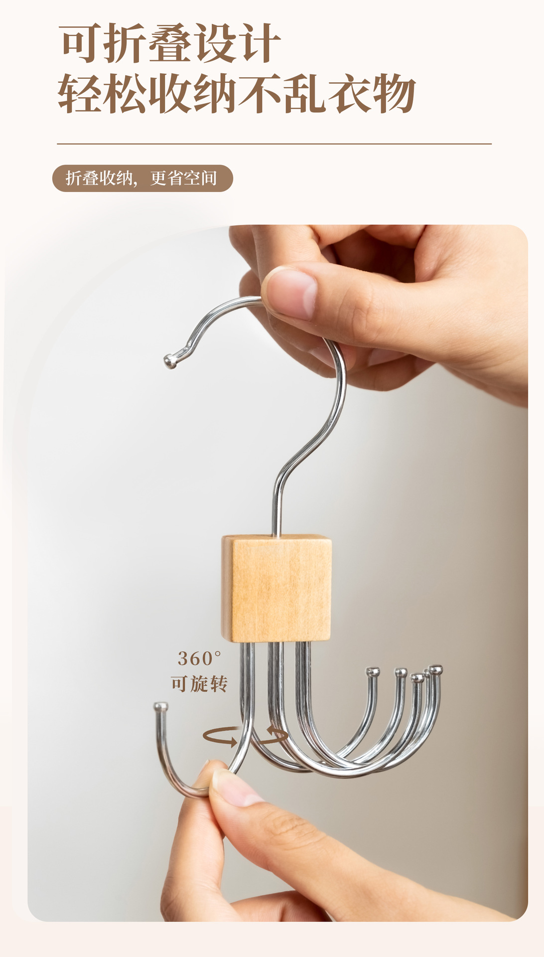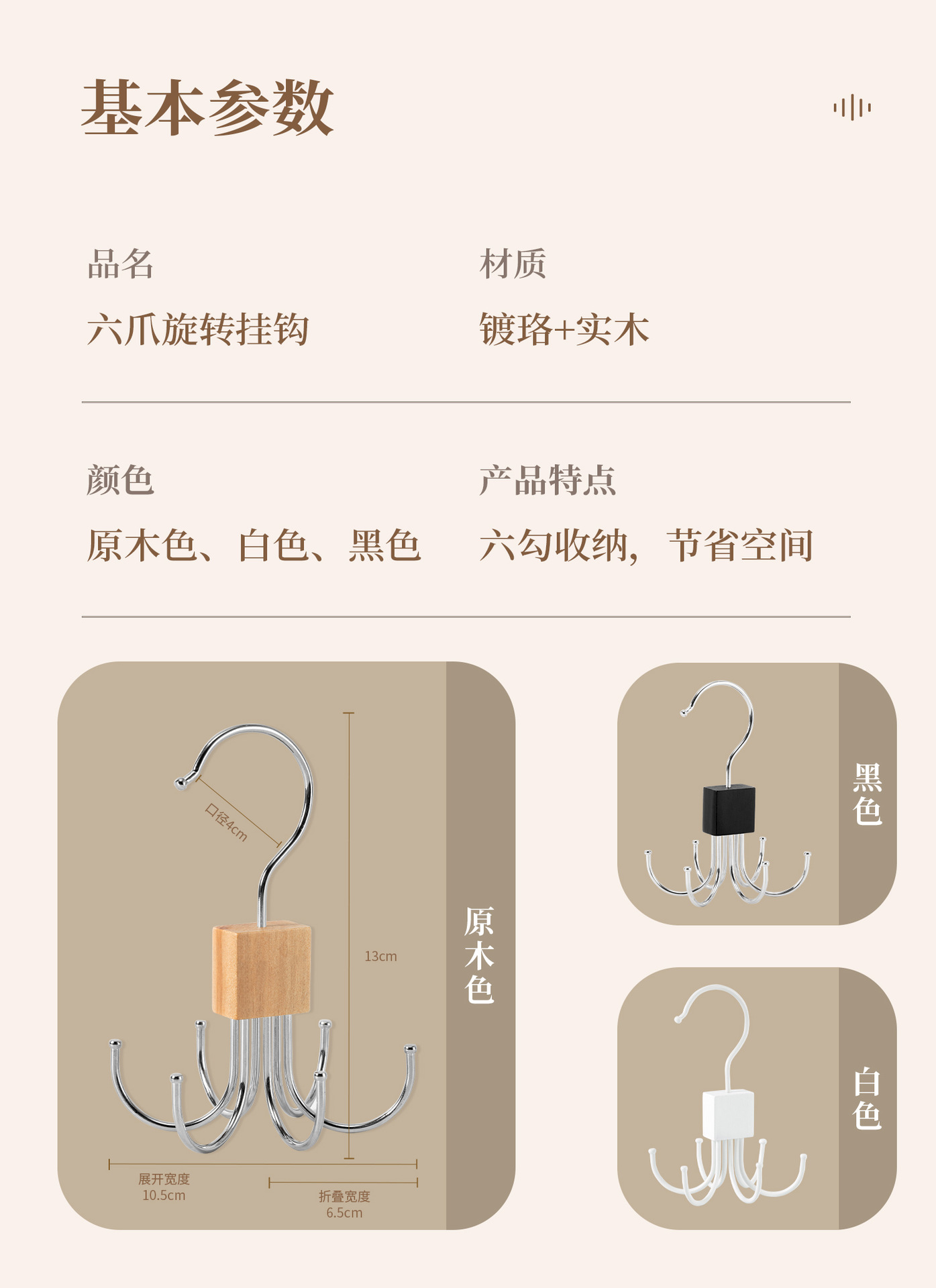 단단한 나무 회전 가능한 6 발톱 후크 행거 다기능 코트 매달려 넥타이 스카프 가방 스토리지 랙 도매
