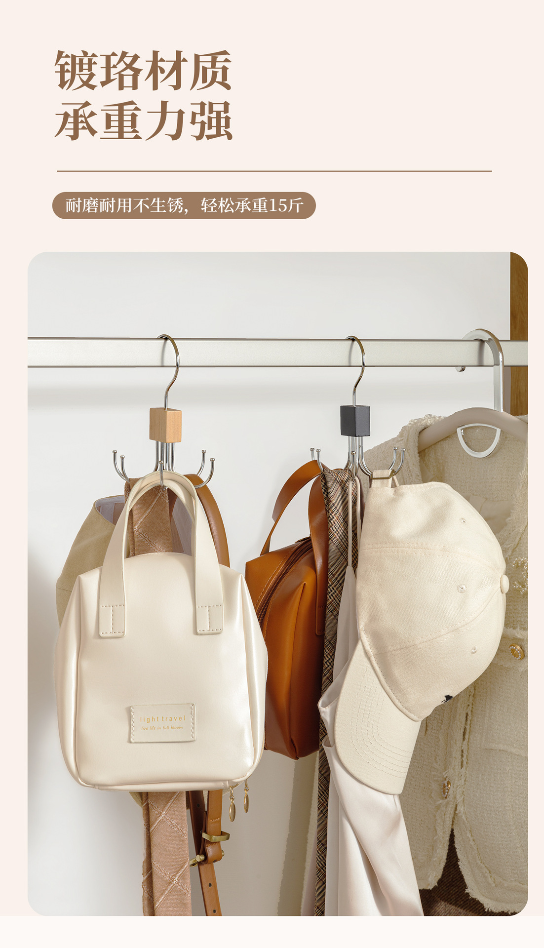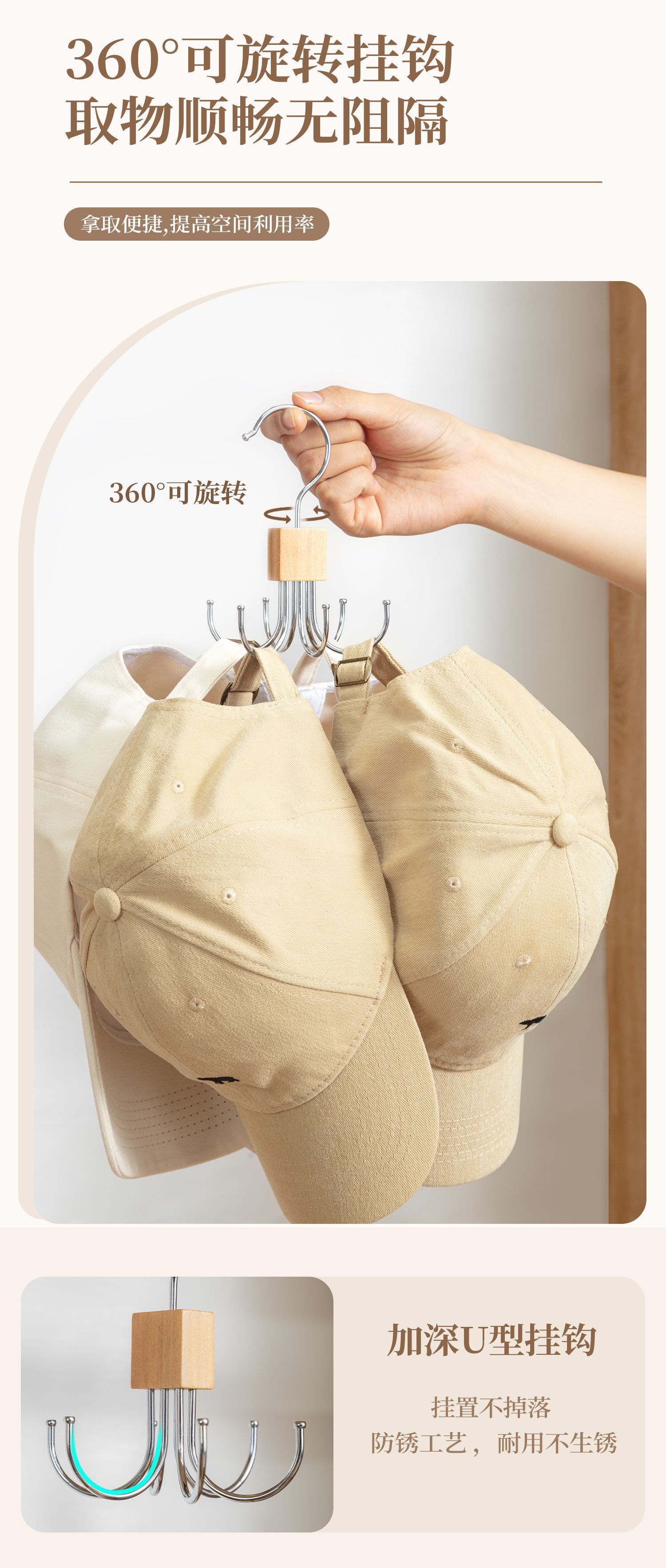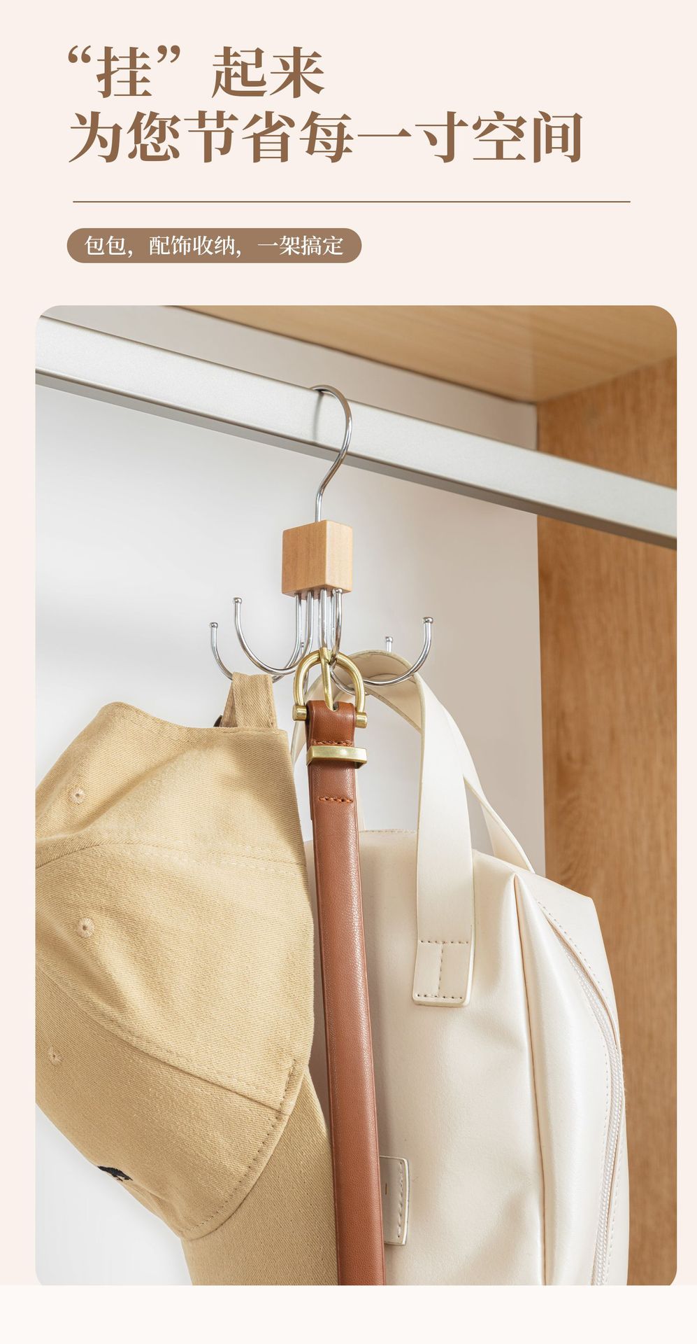 단단한 나무 회전 가능한 6 발톱 후크 행거 다기능 코트 매달려 넥타이 스카프 가방 스토리지 랙 도매