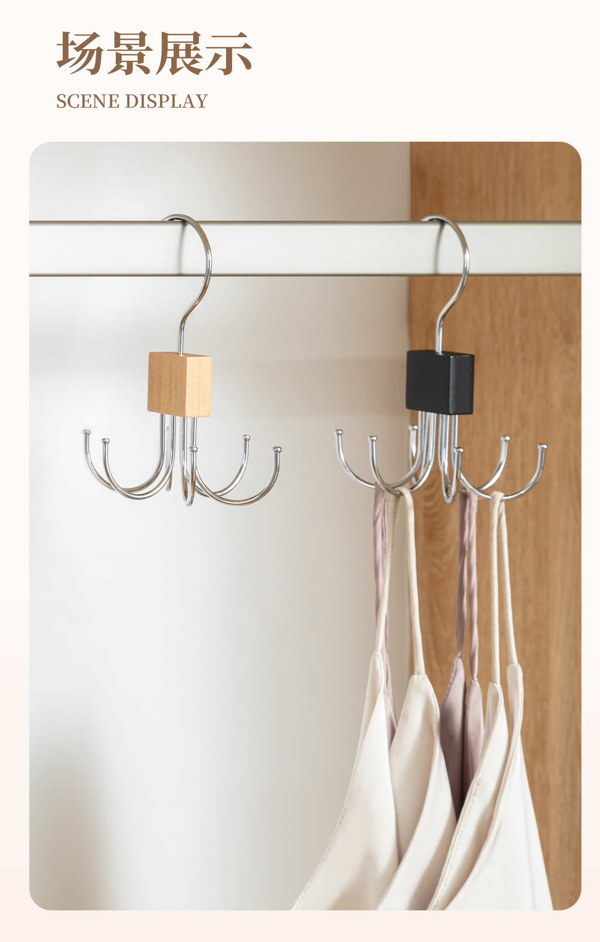 단단한 나무 회전 가능한 6 발톱 후크 행거 다기능 코트 매달려 넥타이 스카프 가방 스토리지 랙 도매스토어 가기