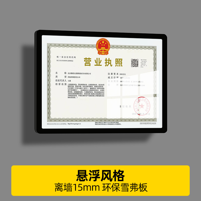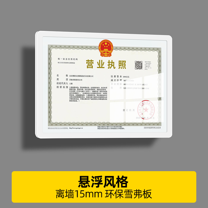 산업 및 상업 비즈니스 라이센스 프레임 벽걸이 인증서 인증서 보호 커버 식품 위생 비즈니스 라이센스 사진 프레임
