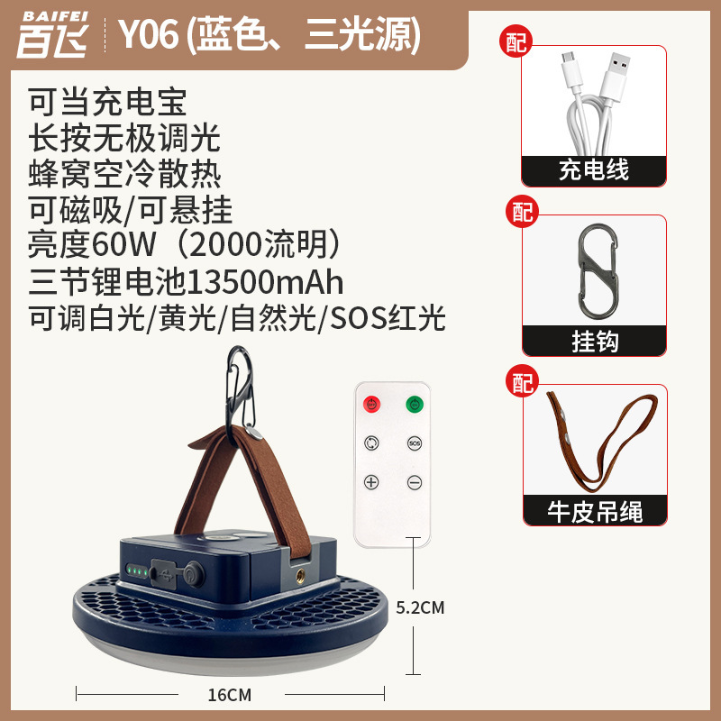 • Baifei-Y06 리모콘 블루(3개 광원) 60W