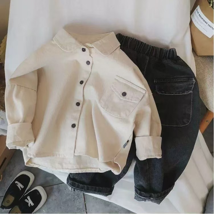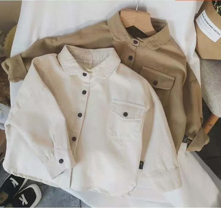 2025년 2월 및 8월 새로운 스타일의 중소형 아동용 루즈한 일본식 소년 셔츠 아동용 면 여름 긴팔 가볍고 트렌디한 멋진 재킷