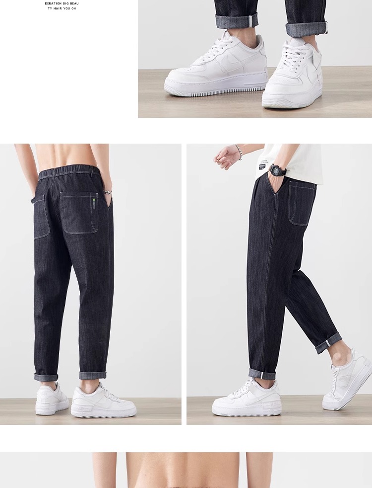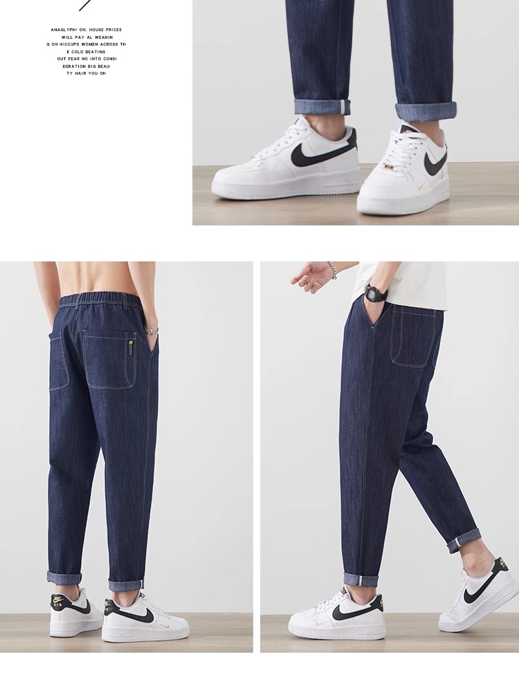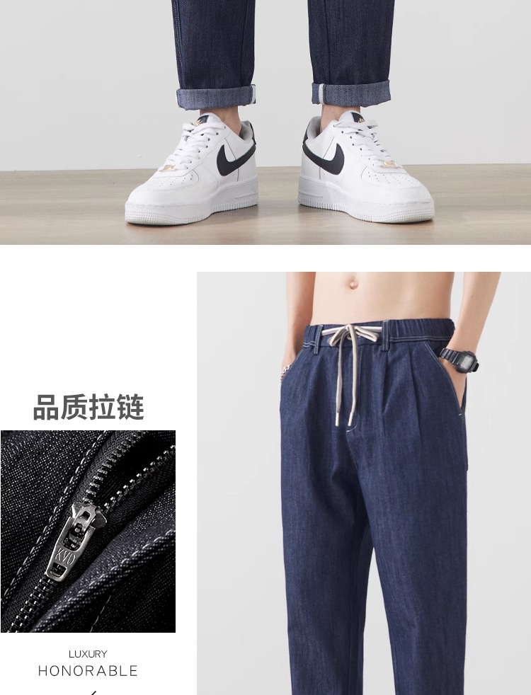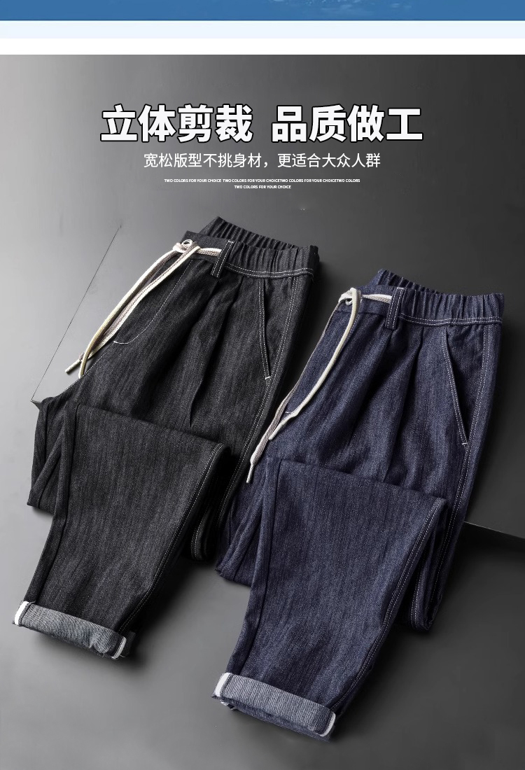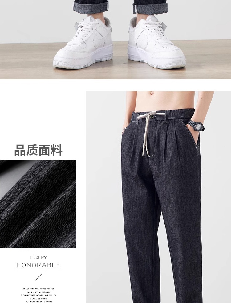 2025 봄 여름 신작 청바지 남성 루즈 스트레이트 인 트렌디 브랜드 레이스 업 마이크로 하이 캐주얼 바지 남성 바지스토어 가기