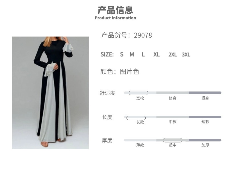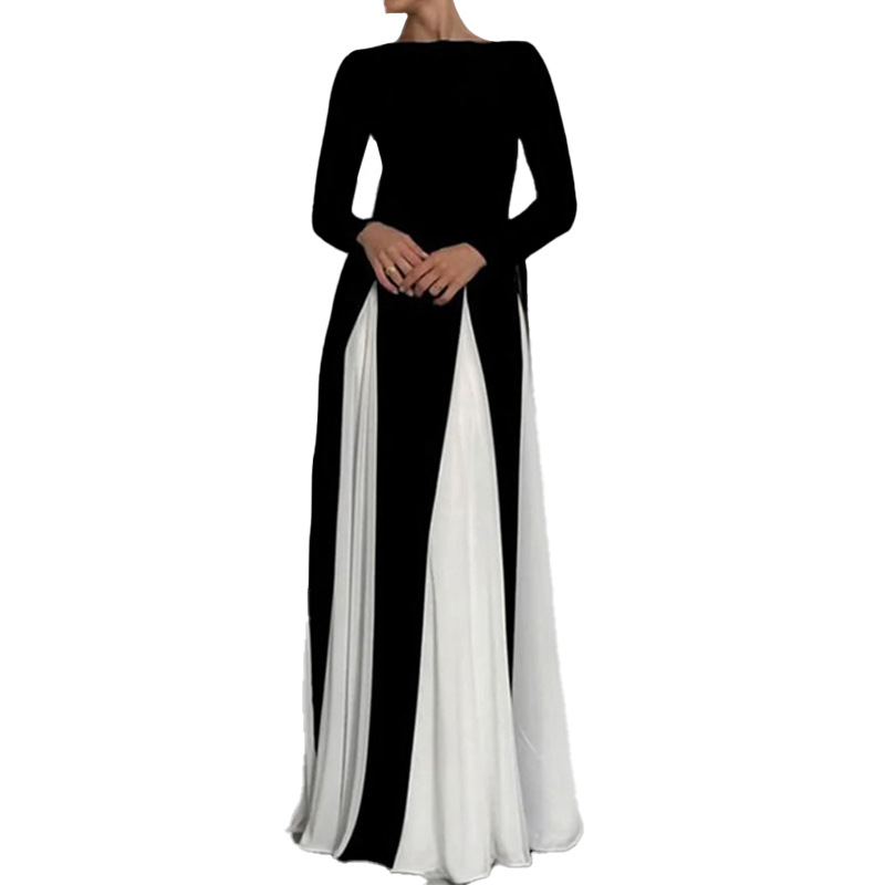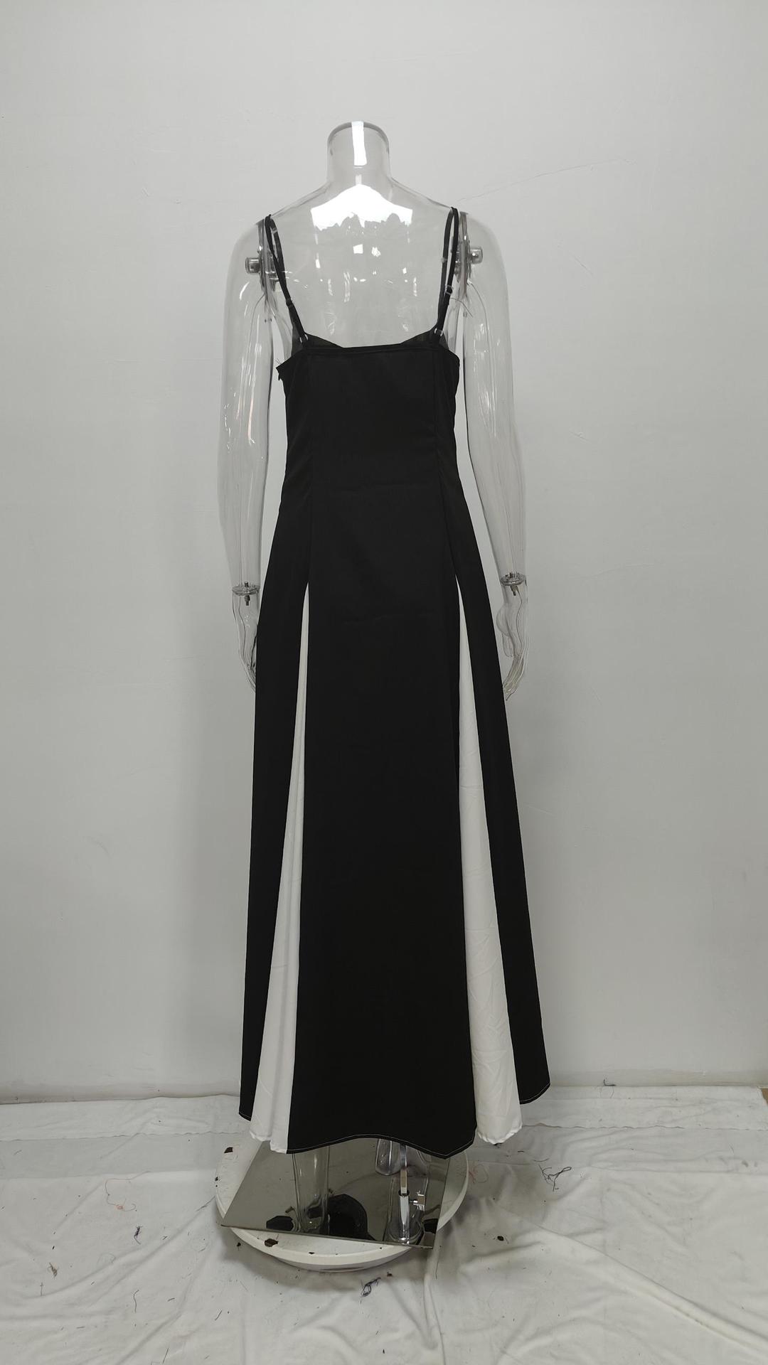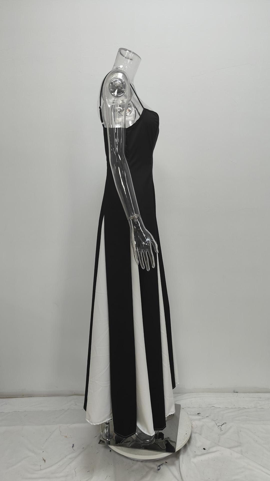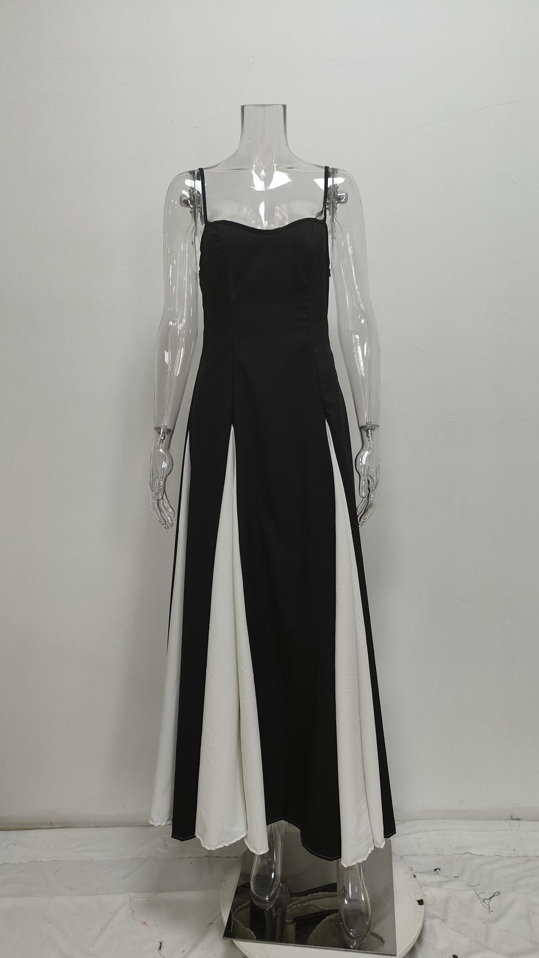 봄 2025 AliExpress 유럽과 미국의 여성 패션 기질 슬링 대조 컬러 느슨한 큰 스윙 휴가 허리 원피스