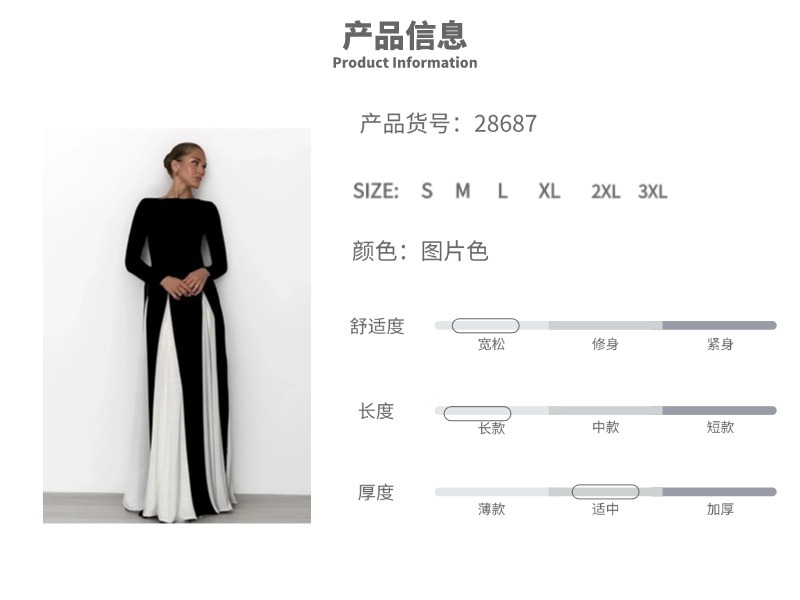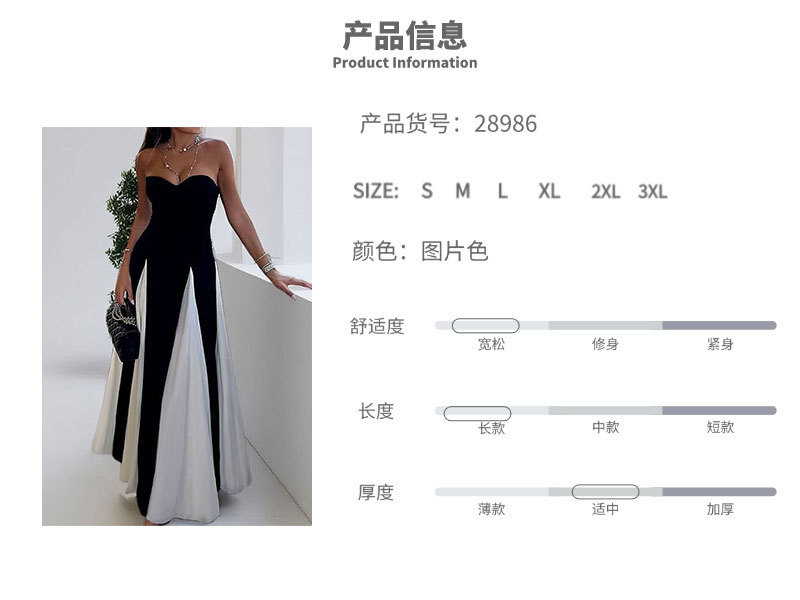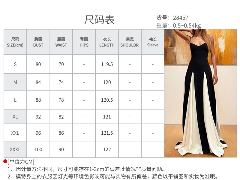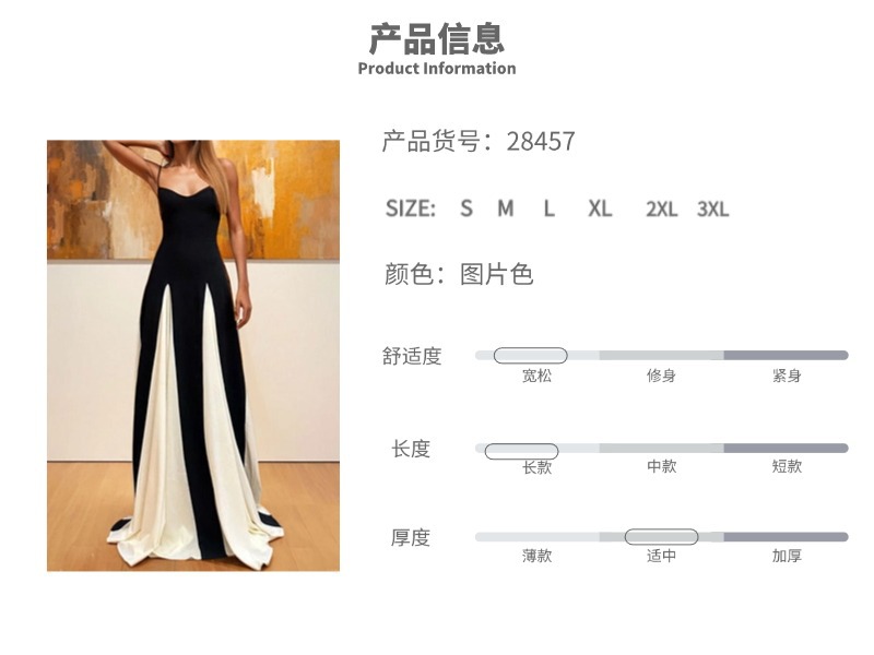 봄 2025 AliExpress 유럽과 미국의 여성 패션 기질 슬링 대조 컬러 느슨한 큰 스윙 휴가 허리 원피스스토어 가기