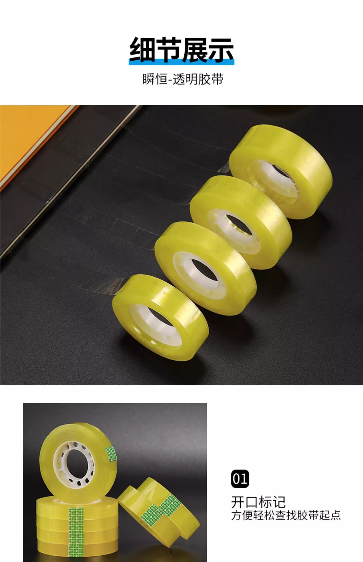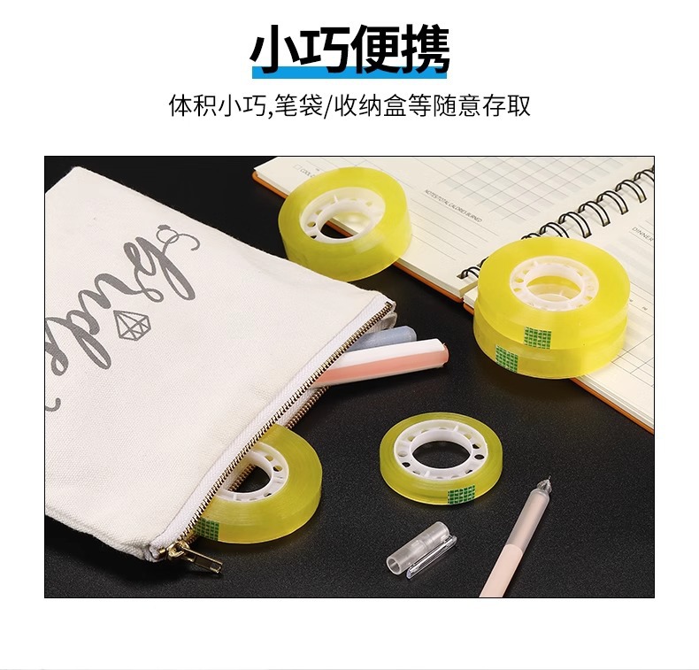 작고 투명한 테이프는 잘 끊어지지 않으며, 학생용 문구, 사무용품, 영어 테이프, 포장 및 밀봉용 테이프, 강력한 접착력의 봉인 테이프입니다.스토어 가기