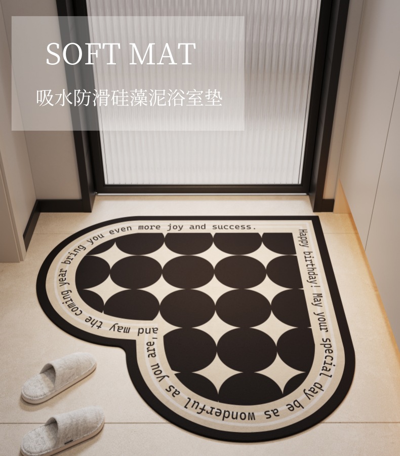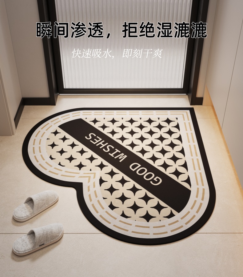 하트 모양의 욕실 흡수 매트 화장실 화장실 도어 Diatom 진흙 발 매트 홈 미끄럼 방지 매트 빠른 건조 카펫