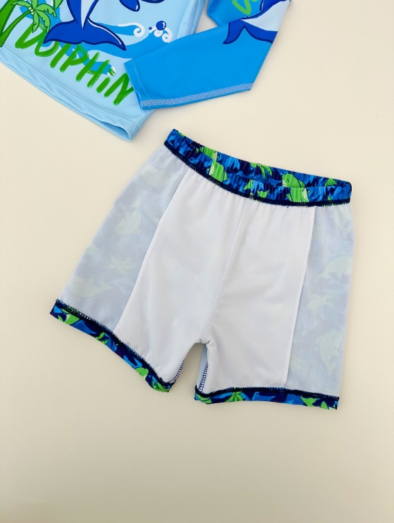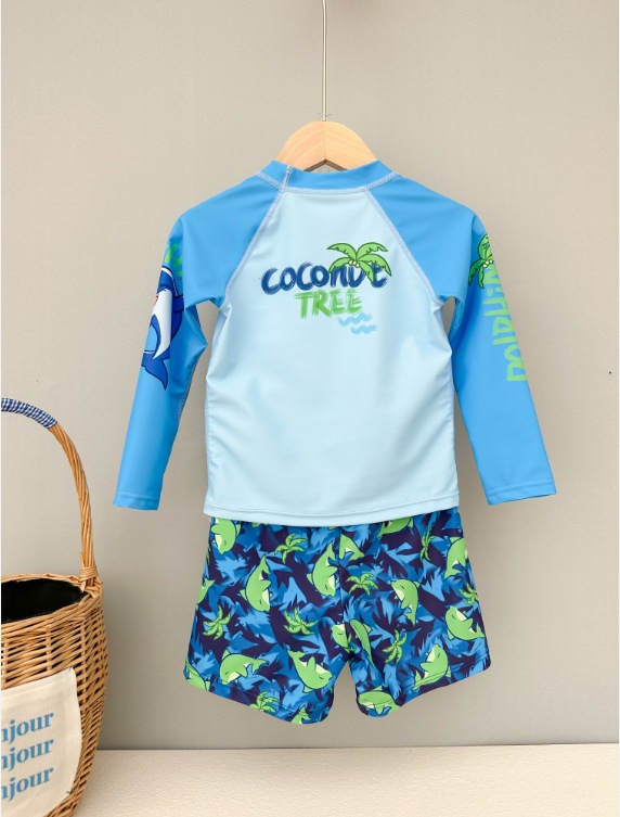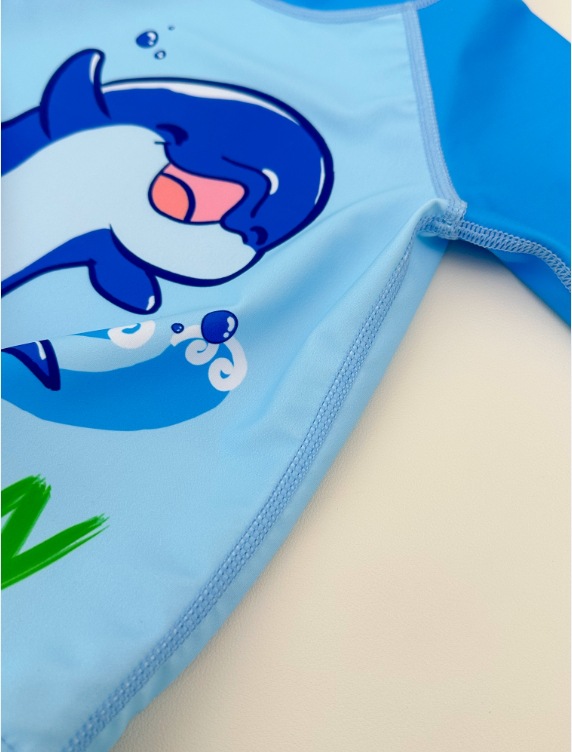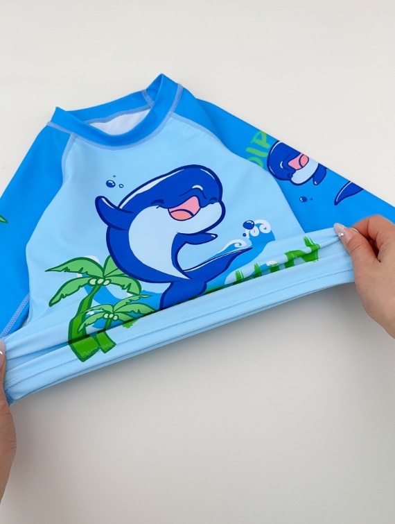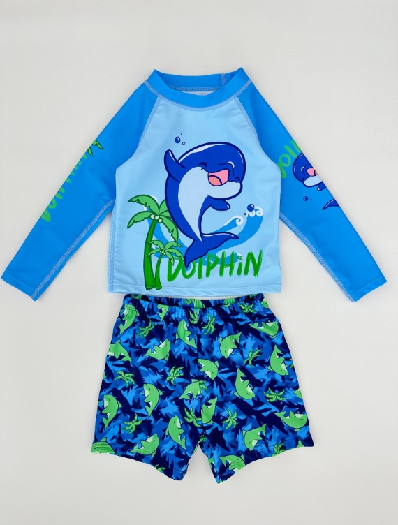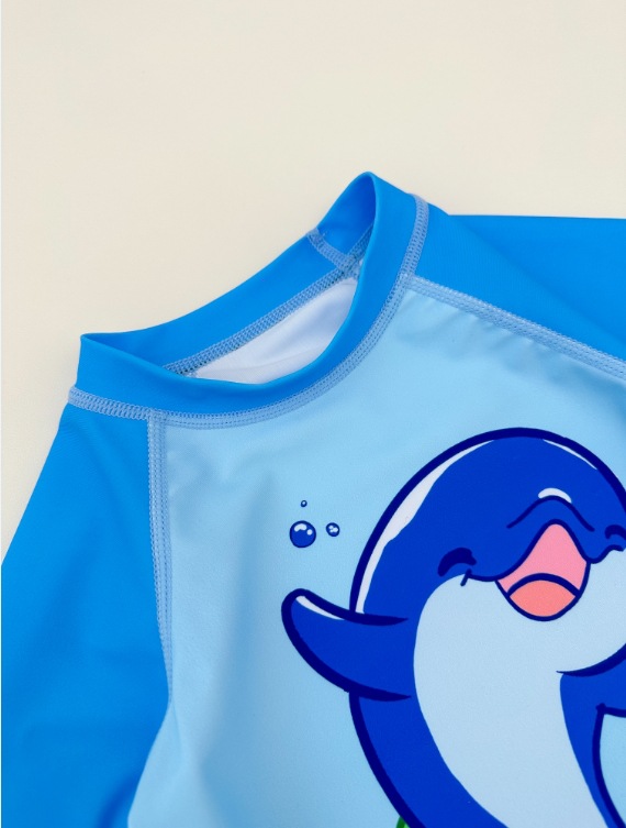 대외 무역 2025 새로운 만화 인쇄 돌고래 긴팔 한국어 고탄성 온천 수영복 만화 중대형 어린이를위한스토어 가기