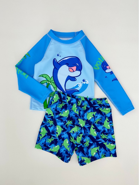 대외 무역 2025 새로운 만화 인쇄 돌고래 긴팔 한국어 고탄성 온천 수영복 만화 중대형 어린이를위한
