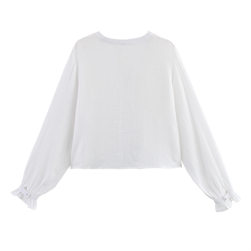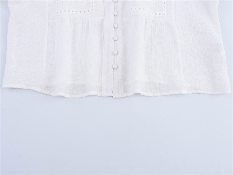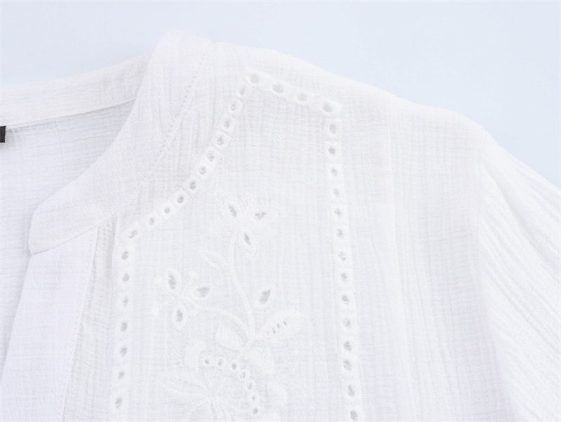 대외 무역 주문! 봄 여름 신작 유럽과 미국 스타일의 여성 패션 캐주얼 루즈 중공 자수 짧은 셔츠 8741022스토어 가기