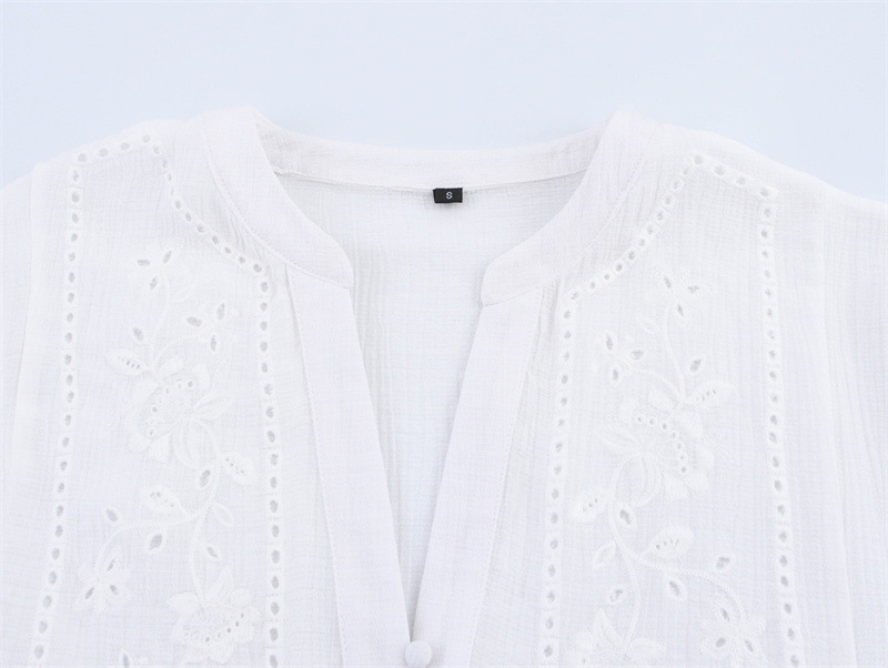대외 무역 주문! 봄 여름 신작 유럽과 미국 스타일의 여성 패션 캐주얼 루즈 중공 자수 짧은 셔츠 8741022