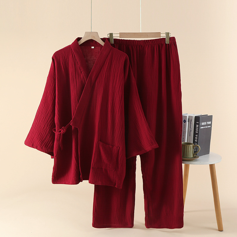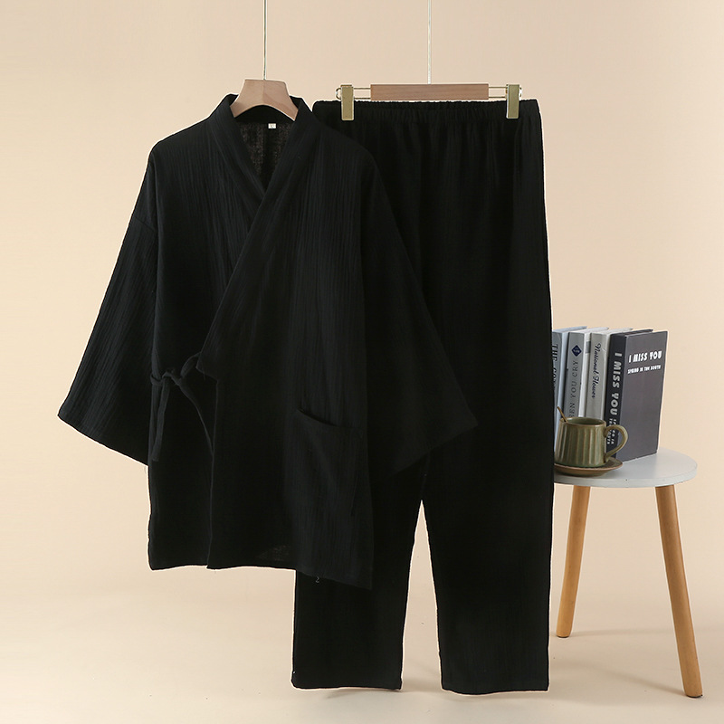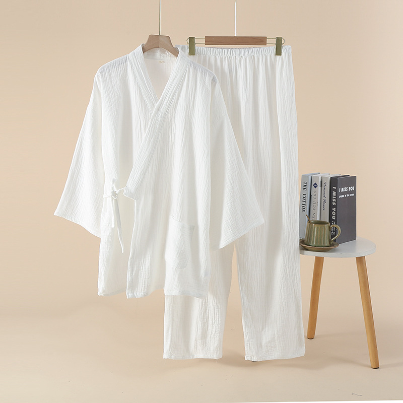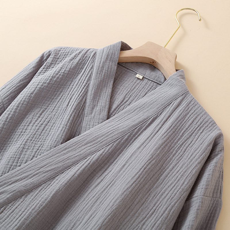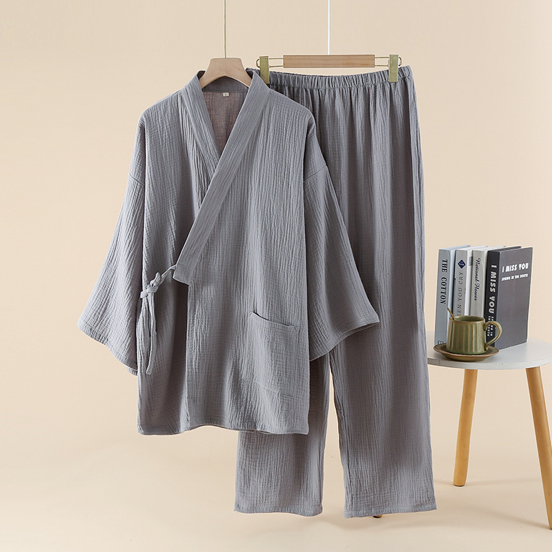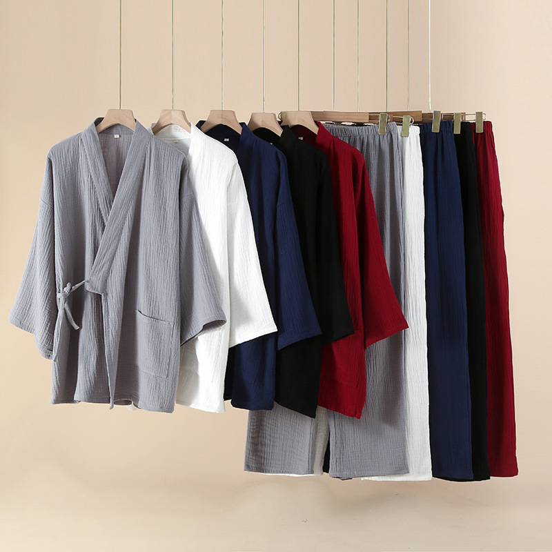 남성용 일본식 더블 레이어 크레이프 스팀 기모노 잠옷 봄, 가을 긴팔 바지 호텔 사우나 잠옷 홈웨어스토어 가기