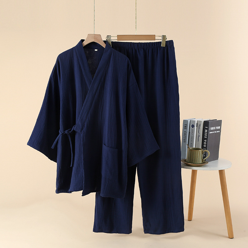 남성용 일본식 더블 레이어 크레이프 스팀 기모노 잠옷 봄, 가을 긴팔 바지 호텔 사우나 잠옷 홈웨어