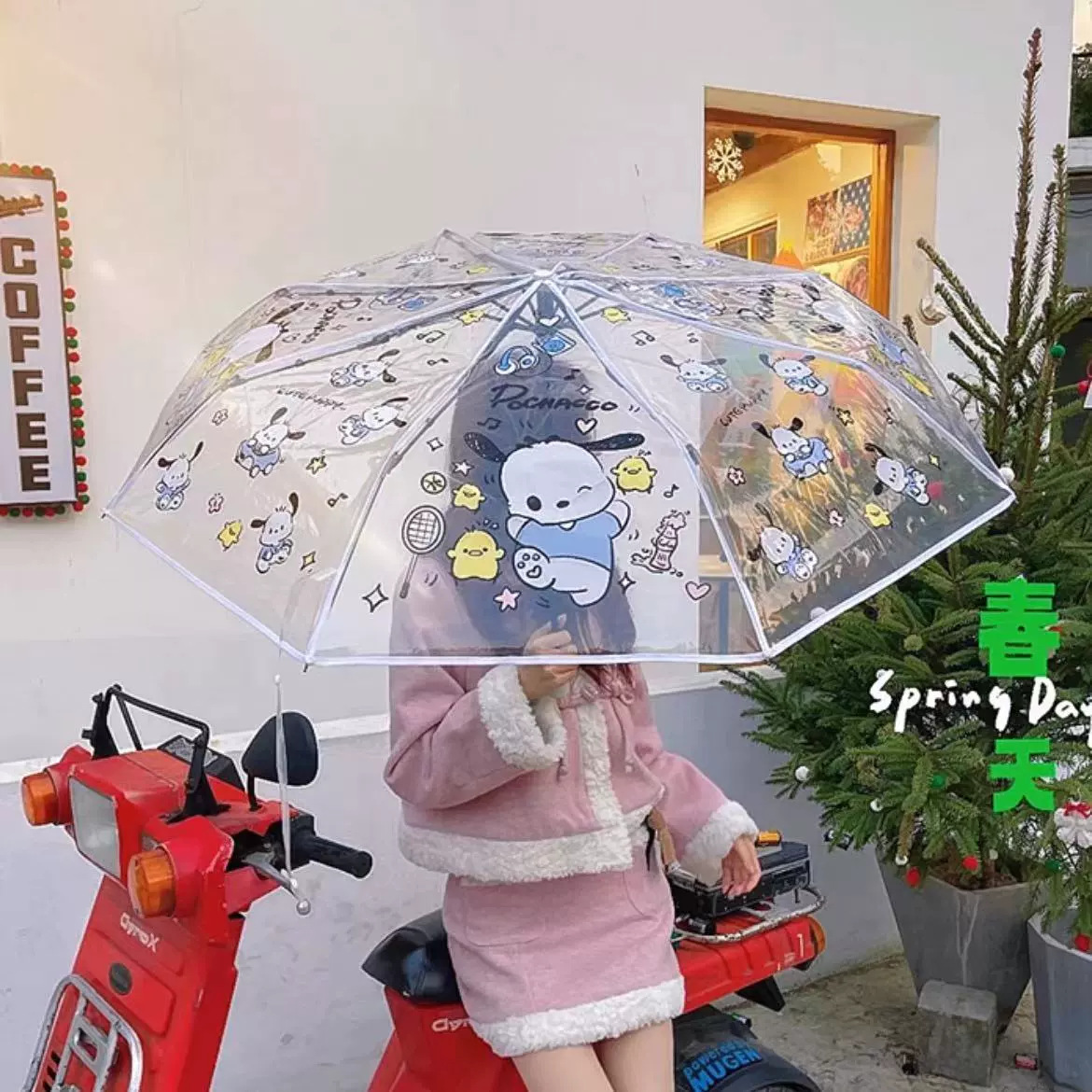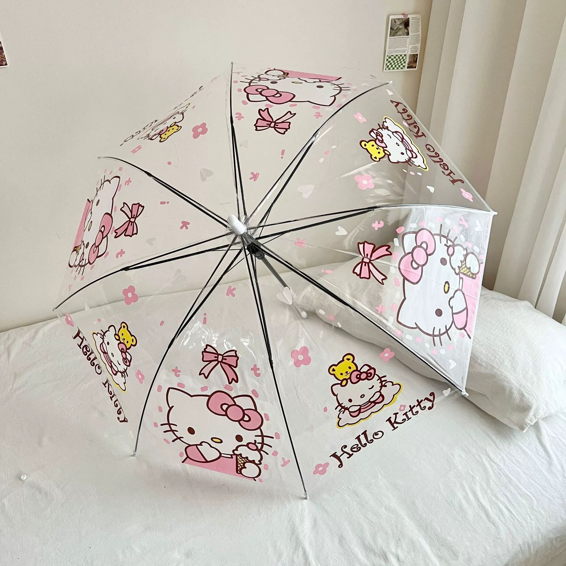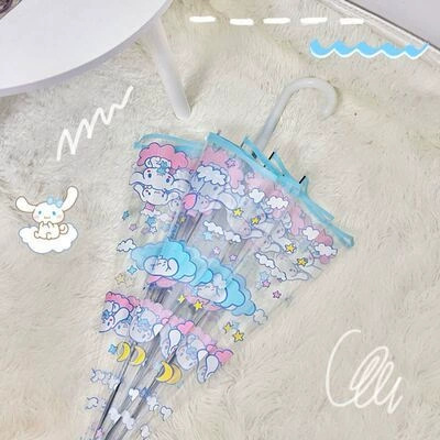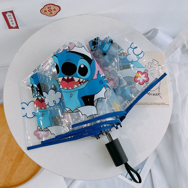 만화 애니메이션 귀여운 스티치 완전 자동 투명 우산 사이버 축하 접는 3 배 우산 햇살 학생 남녀 우산스토어 가기