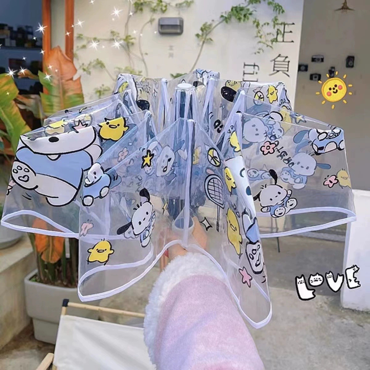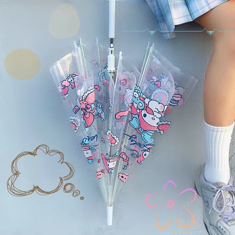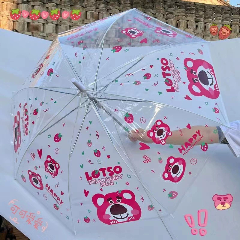만화 애니메이션 귀여운 스티치 완전 자동 투명 우산 사이버 축하 접는 3 배 우산 햇살 학생 남녀 우산