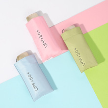 现货迷你扁六折太阳伞晴雨两用遮阳伞小巧便携纯色女士卡片防晒伞