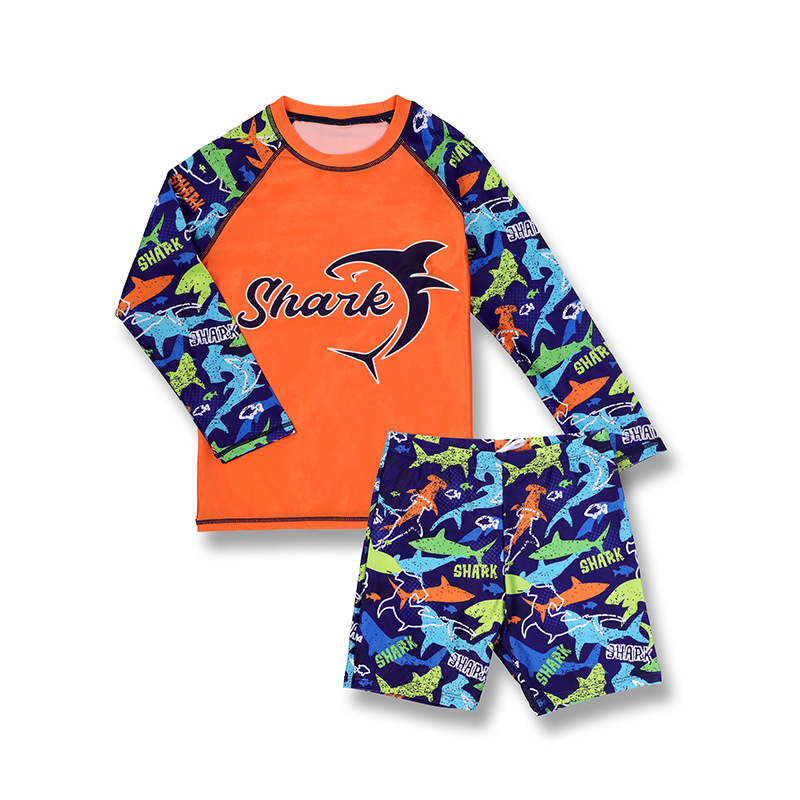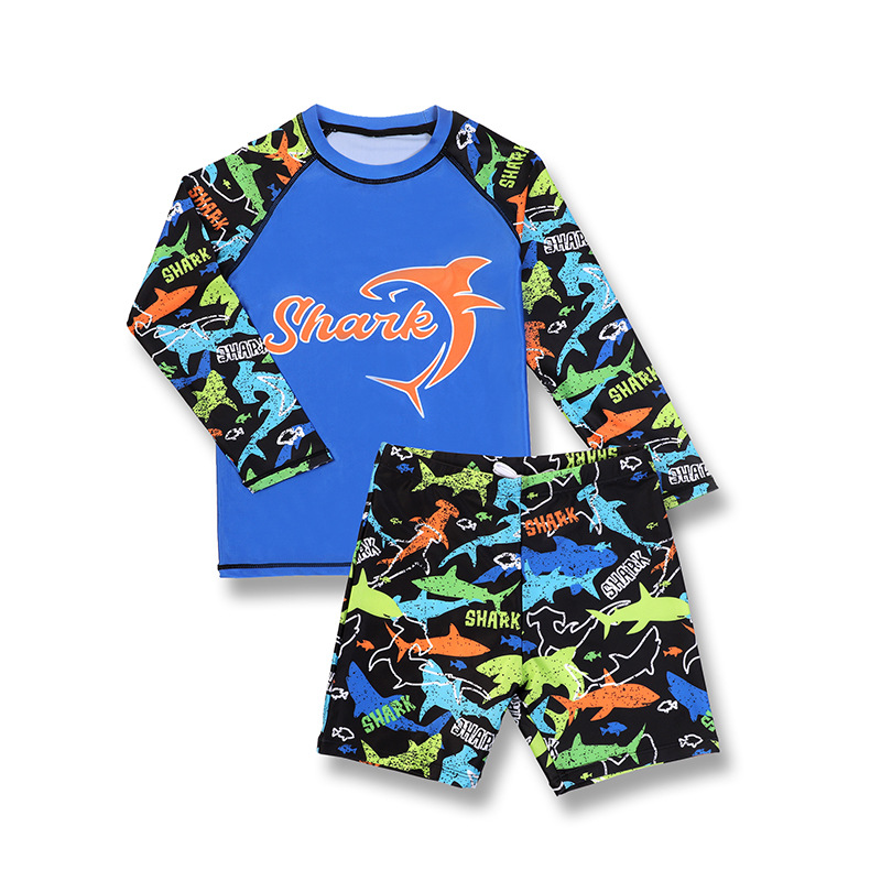 2025 새로운 어린이 수영복 스플릿 복서 긴 소매 중형 및 대형 어린이 속건성 수영복