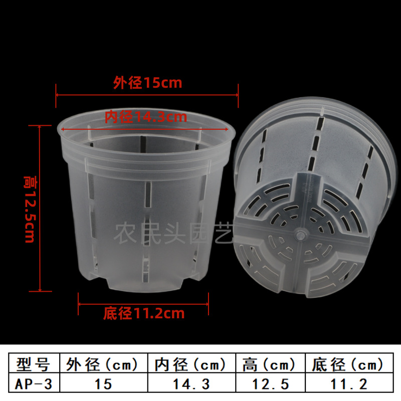 플라스틱 AP 뿌리 제어 난초 화분, 나비 난초, 덴드로비움 다육 묘목 뿌리 화분, 두꺼운 반투명 측면 구멍 다공성 화분