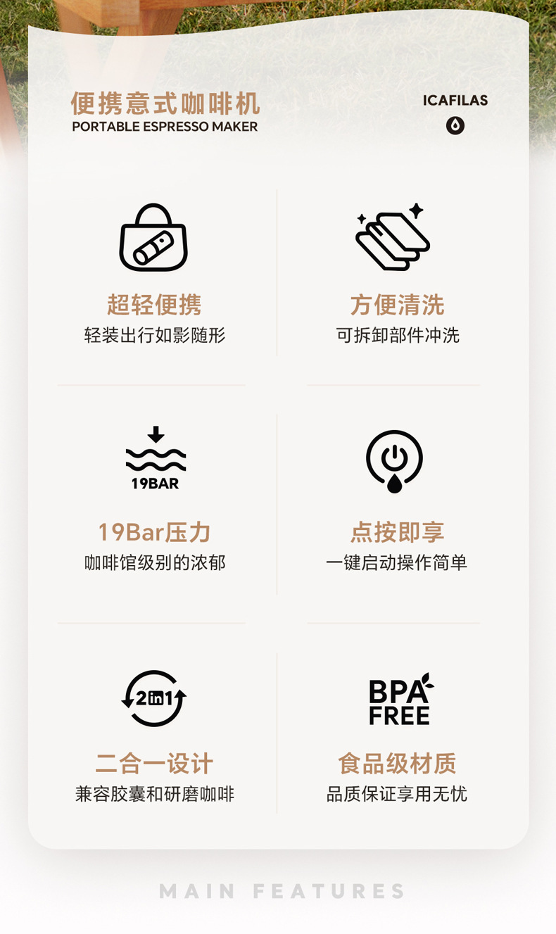 이탈리아 에스프레소 파우더 캡슐을 추출하는 야외 여행 및 출장용 소형 휴대용 가열 커피 머신