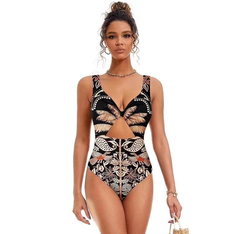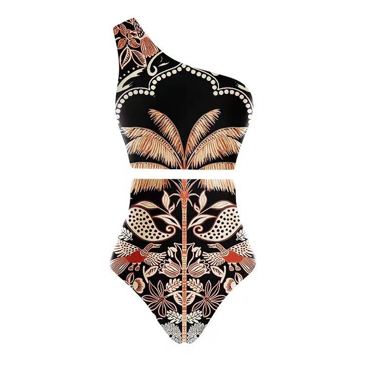 2025 새로운 유럽과 미국의 원피스 비키니 수영복 세트 복고풍 아마존 휴가 해변 온천 수영복