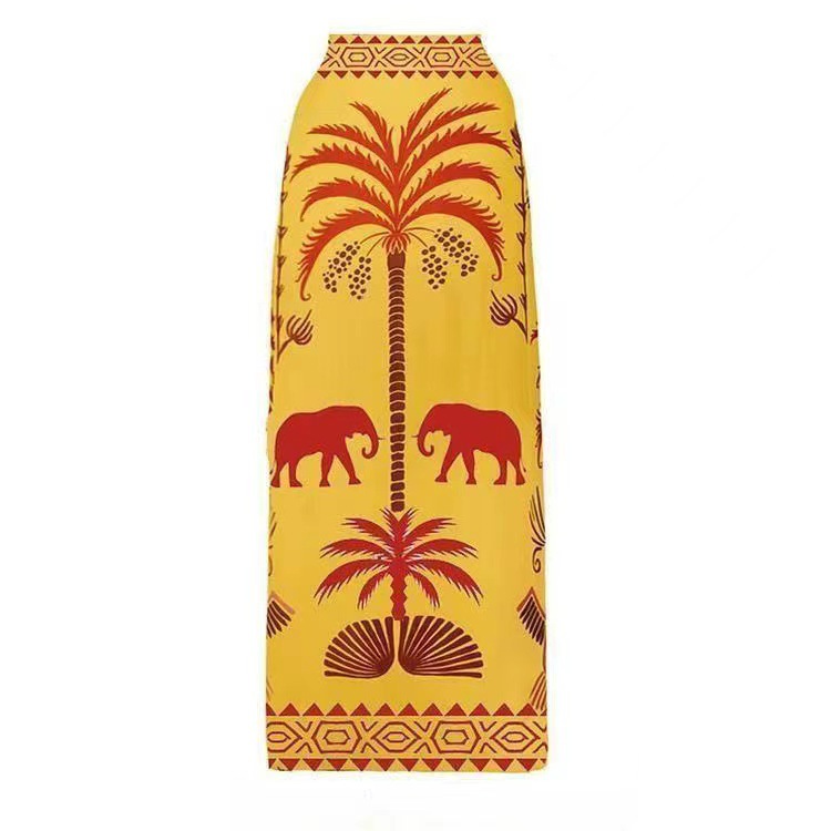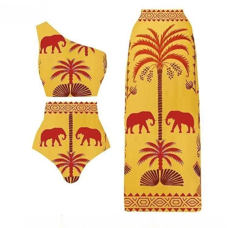 亚马逊跨境欧美比基尼三件套泳衣防晒网纱罩衫印花沙滩度假游泳衣