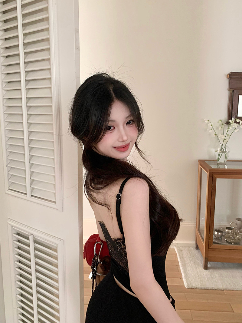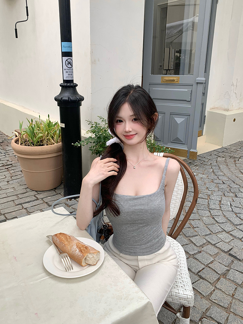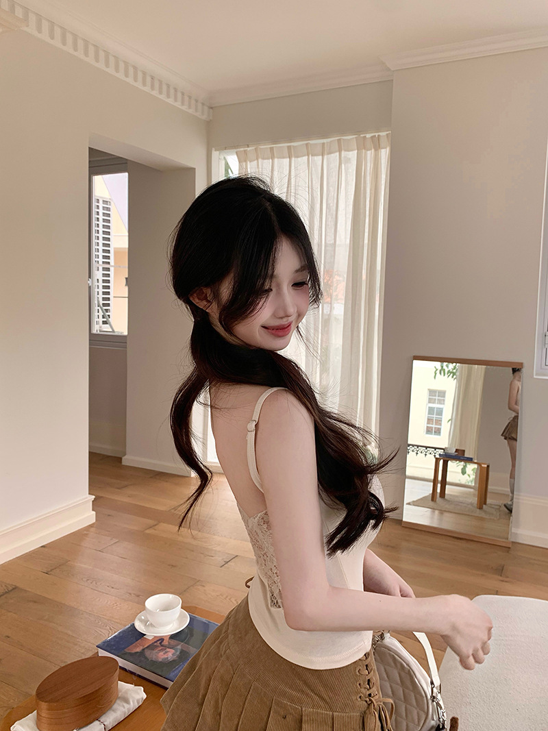 순수하고 섹시한 레이스 캐미솔 이너웨어, 여성용 여름용 노출방지 가슴패드 일체형 슬림핏 베이스레이어 탑스토어 가기