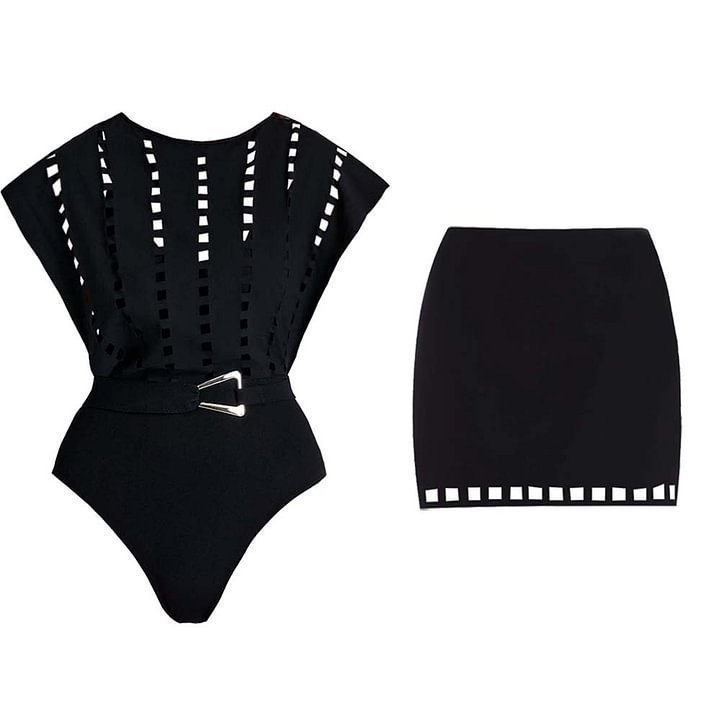 Spot 유럽과 미국의 새로운 스타일 Amazon AliExpress 중공 배트 슬리브 섹시 슬림 원피스 수영복 여성 25302