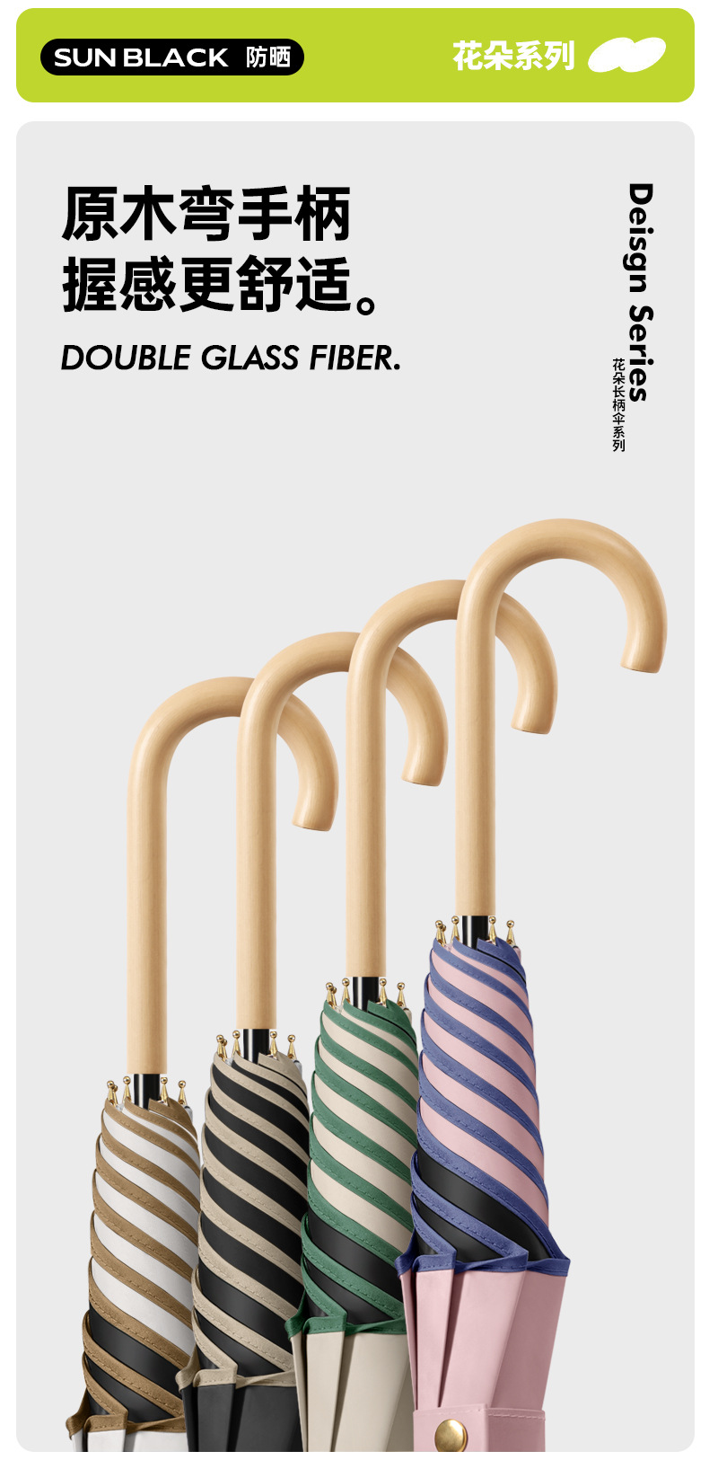 원목 8단 직선형 우산, 블랙코팅 자외선 차단 양산, 자동 우산, 고급스러운 여성용 긴 손잡이 양산스토어 가기