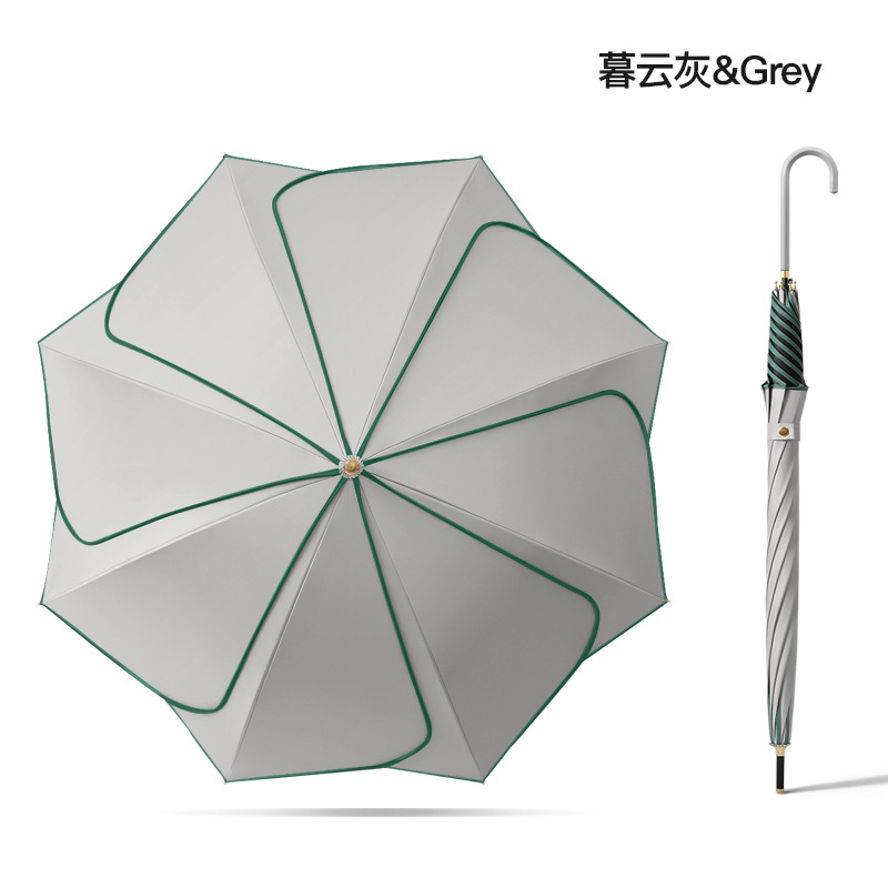 • [직선 나무 손잡이] 8개 뼈 꽃잎 직선 우산 - 무윤 그레이