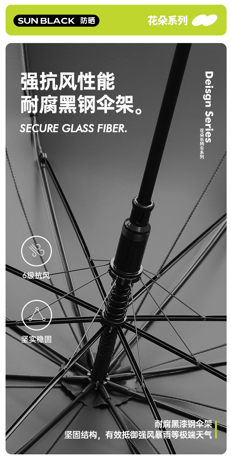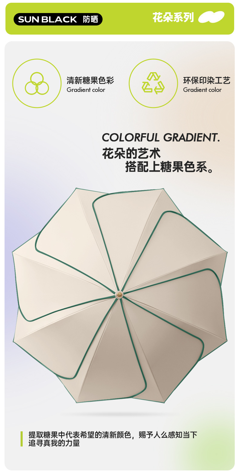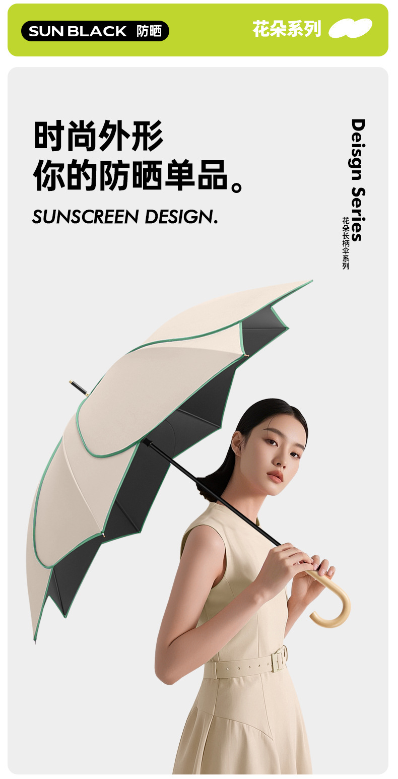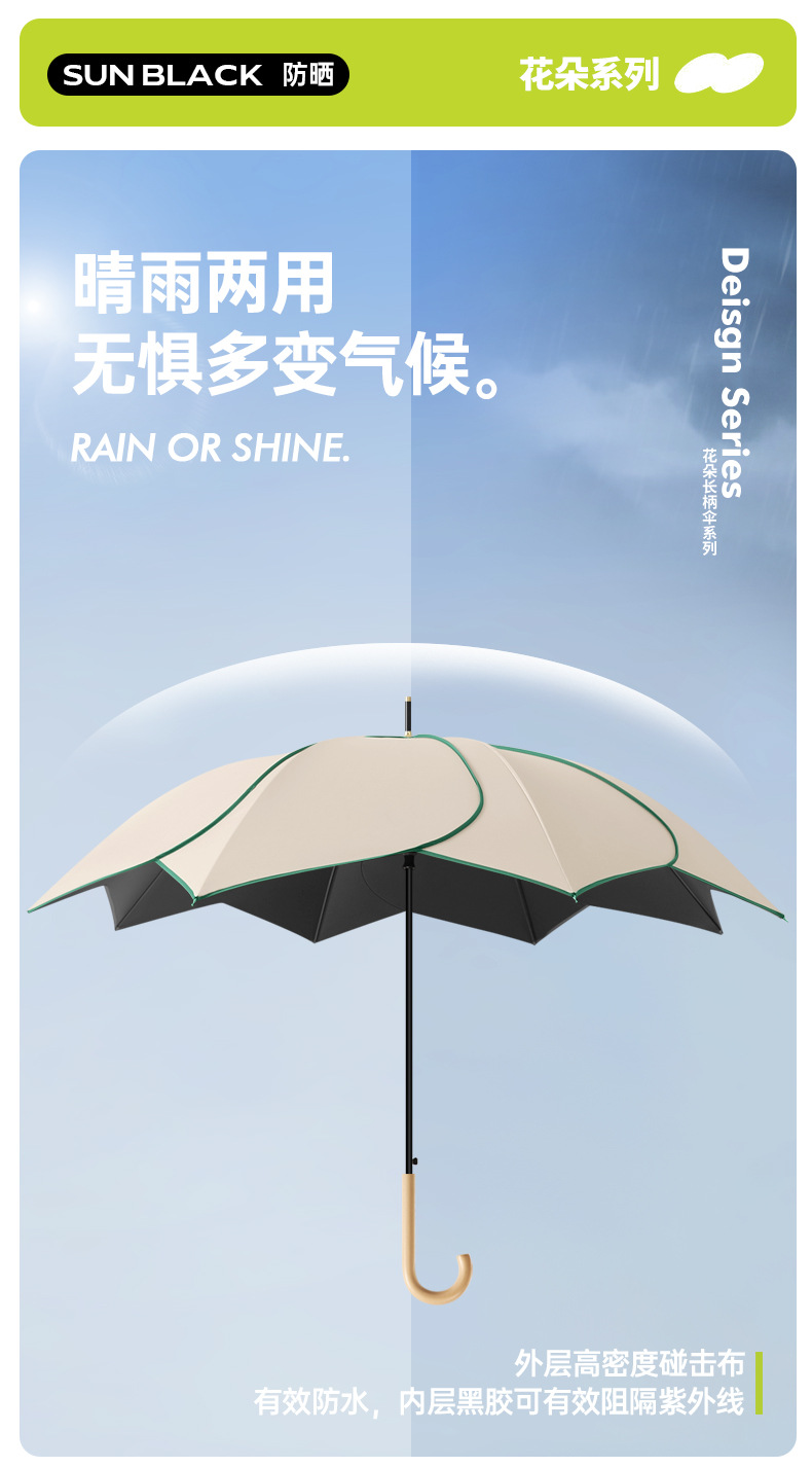 • [가죽 곡선 손잡이] 8본 꽃잎 직선 우산 - 차가운 향기로운 녹색