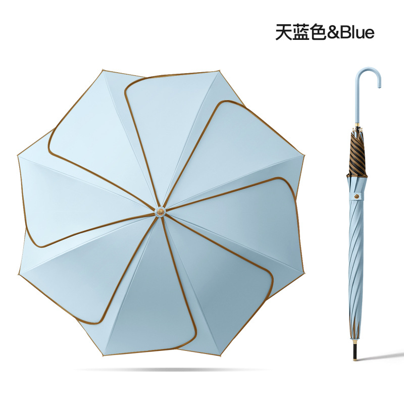 • [가죽 곡선 손잡이] 8본 꽃잎 직선 우산 - 하늘색
