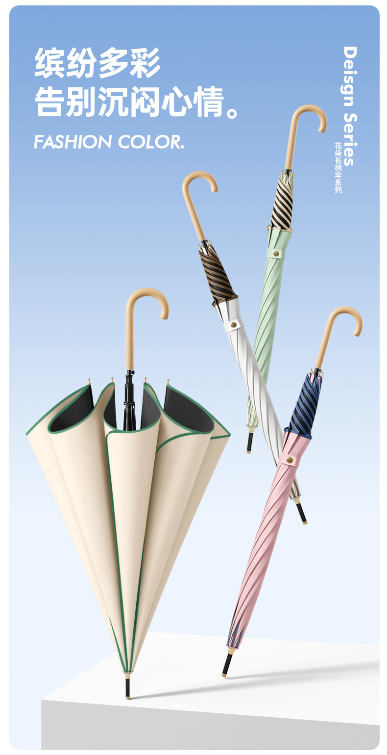 • [직선 나무 손잡이] 8개 뼈 꽃잎 직선 우산 - 차가운 향기로운 녹색