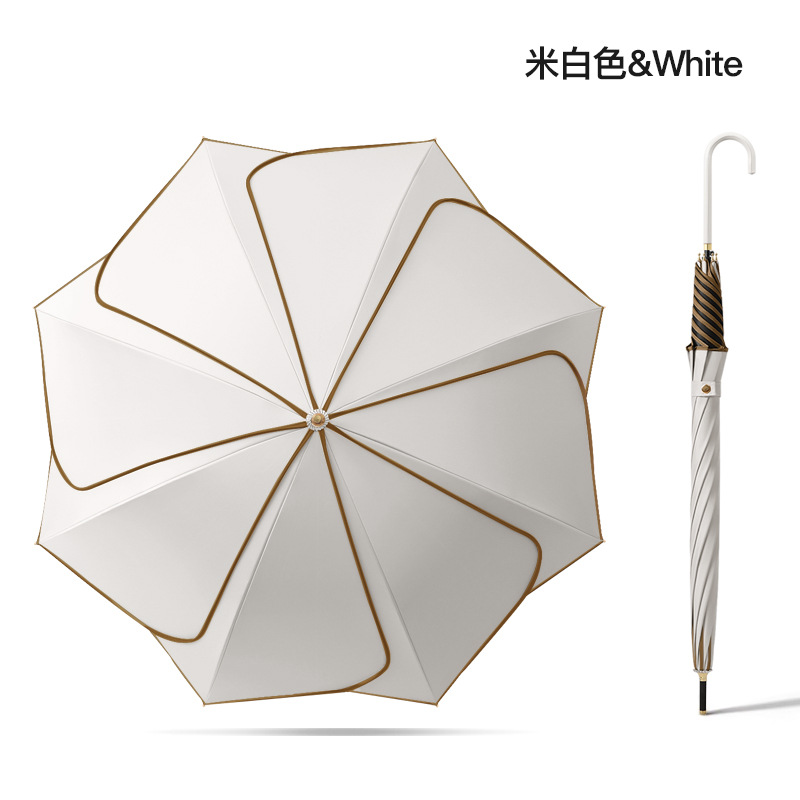 • [가죽 곡선 손잡이] 8본 꽃잎 직선 우산 - 오프화이트