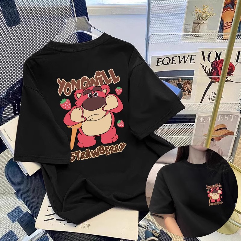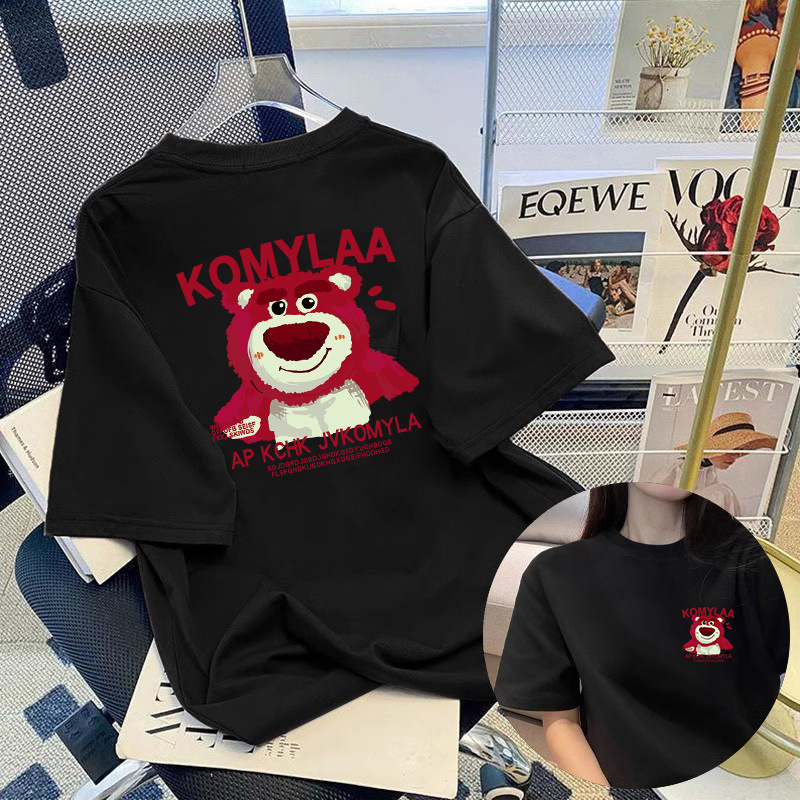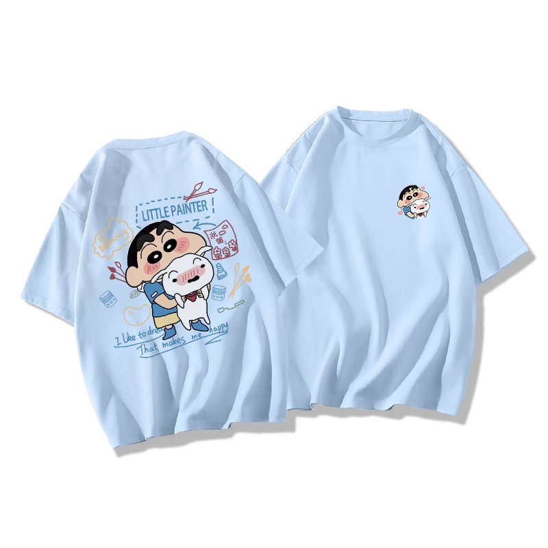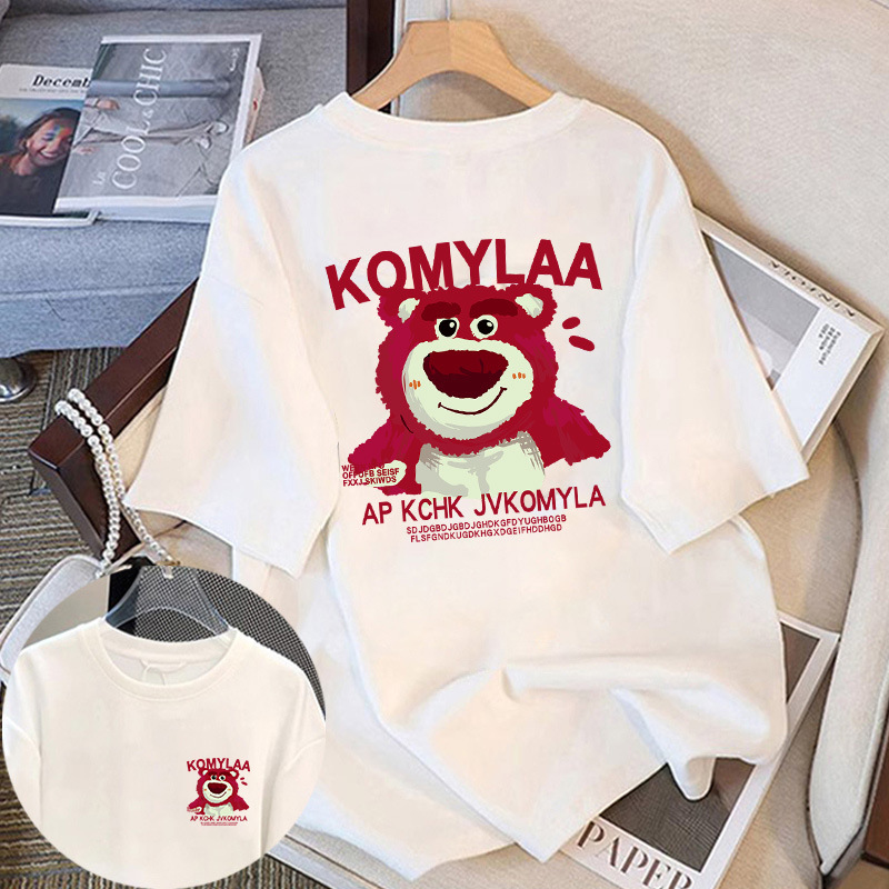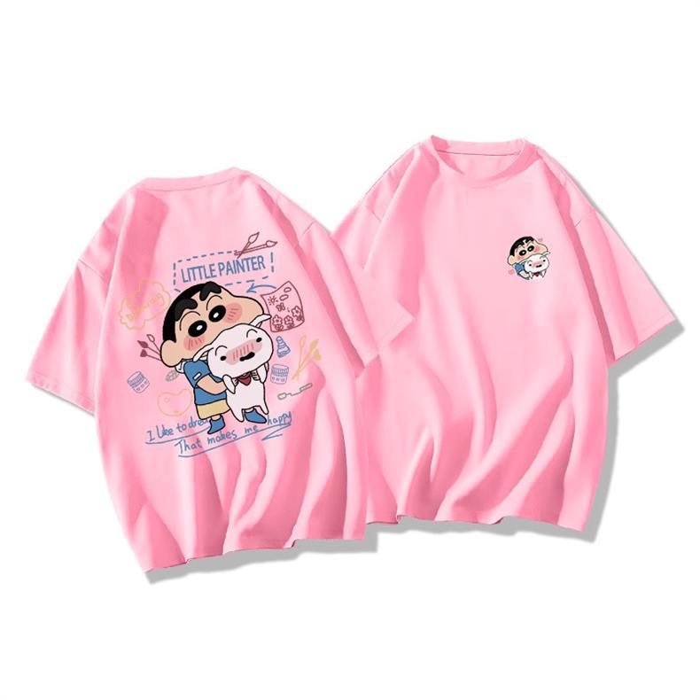 플러스 사이즈 코튼 반팔 티셔츠 여성용 2025 년 여름 새 크레용 작은 새 만화 디자인 감각 느슨한 반소매 탑스토어 가기
